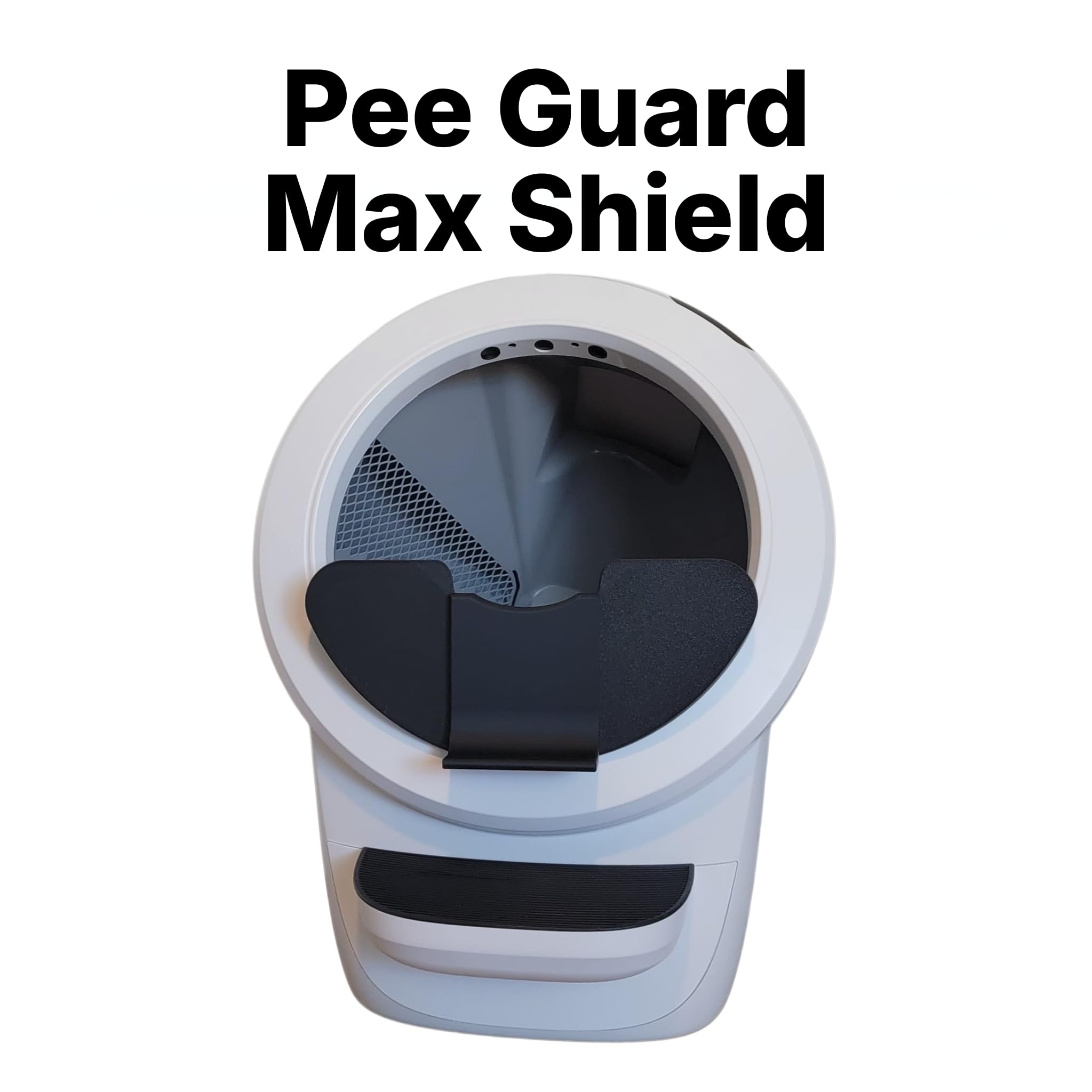Pee Guard Max Shield is for the LITTER-ROBOT 4, which IS NOT INCLUDED. The Pee Guard attachment with UPDATED! Max Shield for the Litter-Robot 4 is your go-to solution for a stylish and functional addition to your automatic litter system. Designed to solve common litter box frustrations, this shield ensures your cat pees inside the box for a cleaner area and a tidier floor. Optional Add On: The Waste Leveler for Litter-Robot 4! Frustrated by how quickly the Robot waste drawer fills up? The secret culprit was the way clumps dropped, creating a narrow, inefficient "cone" that tricked the sensor into thinking the drawer was full—often in just 3 days! Key Features & Benefits Helps with peeing out of the box!: The Pee Guard and Max Shield now extends out and deeper into the litter box, ensuring that even if your cat aims high or low, everything drains right into the litter box. Stops Flying Litter: Prevents flying litter from making it outside the Litter-Robot! Built In Extra Step: Helps your cat get into the box getting over the higher shield. Heavy-Duty & Taller: Unlike other shields, ours is heavy-duty and taller, providing extra space for your feline to comfortably turn around without sacrificing functionality. Seamless, One-Piece Design: Made in ONE FULL PART! This eliminates cracks or gaps, making it better than ever and easier to keep clean. Easy Installation: No tools required! Simply place it on the rim of the litter box, press down firmly in the middle, and you should hear it snap right into place. To remove, simply pull straight up while holding down the litter box. Measurements: 16 in. wide × 7.5 in. tall × 3.25 in. deep Middle opening is 5.25 in. from bottom of shield or 4.25 in. from rim. 5 in. wide Important Notes & Disclaimer The Pee Guard Max Shield is for the LITTER-ROBOT 4, WHICH IS NOT INCLUDED. This listing is for the custom-designed shield only. Returns: Due to the nature of this product, we generally do not accept returns. If you encounter any problems, please contact us directly, and we'll be happy to assist you.