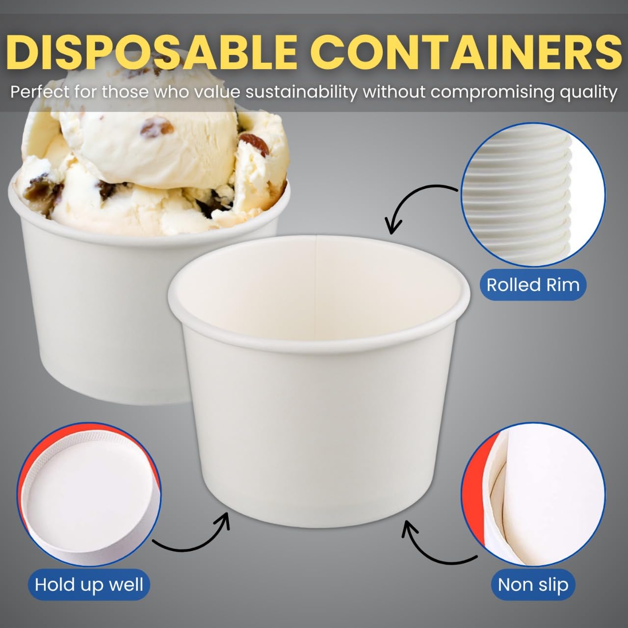 CONVENIENT CLEANUP: Single-use Paper ice cream cups, design eliminates the need for washing, making these cups ideal for hassle-free entertaining and quick disposal