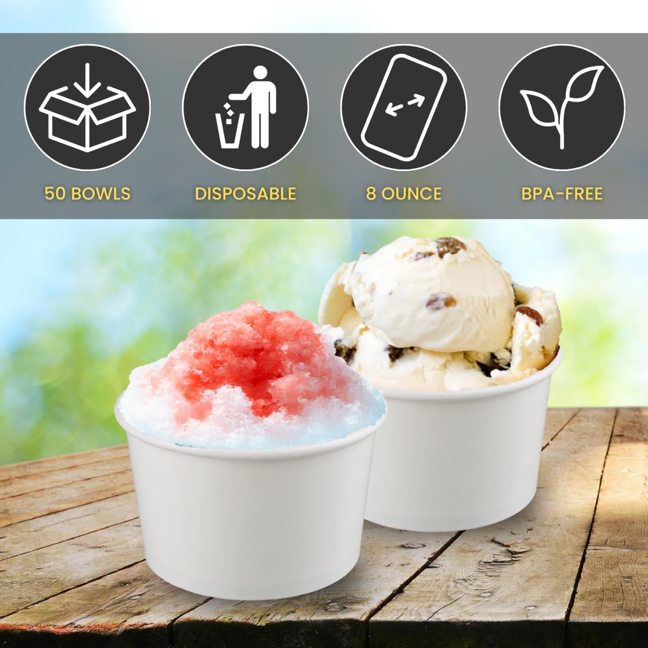PACKAGE INCLUDES: Set of 50 Ice Cream Bowls, with generous 12-ounce capacity, perfect for serving various frozen treats and desserts