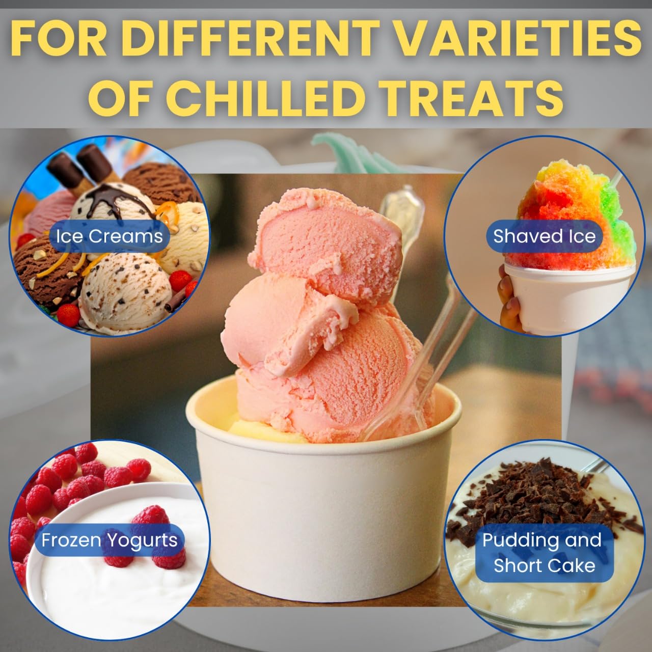 VERSATILE APPLICATION: Suitable for both hot and cold items including ice cream, frozen yogurt, shaved ice, and gelato at parties and events