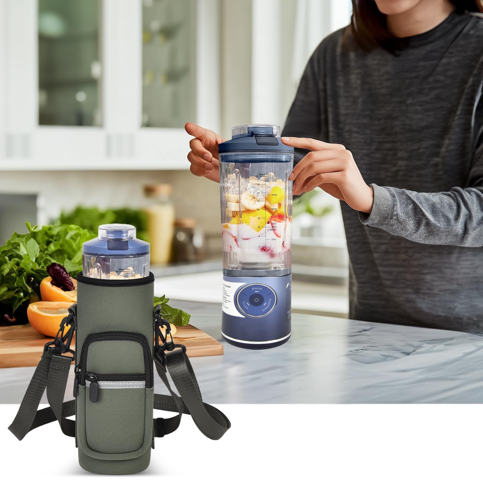 Professional blender storage with premium material: smoothie blender cup to go case crafted from tear-resistant, high-quality cloth with a soft interior lining to prevent scratches and promote heat dissipation, this material of personal blender storage not only stands up to wear but also repels stains and dust, keeping the interior clean. The fabric is easy to wipe down and clean, ensuring it always looks neat and tidy