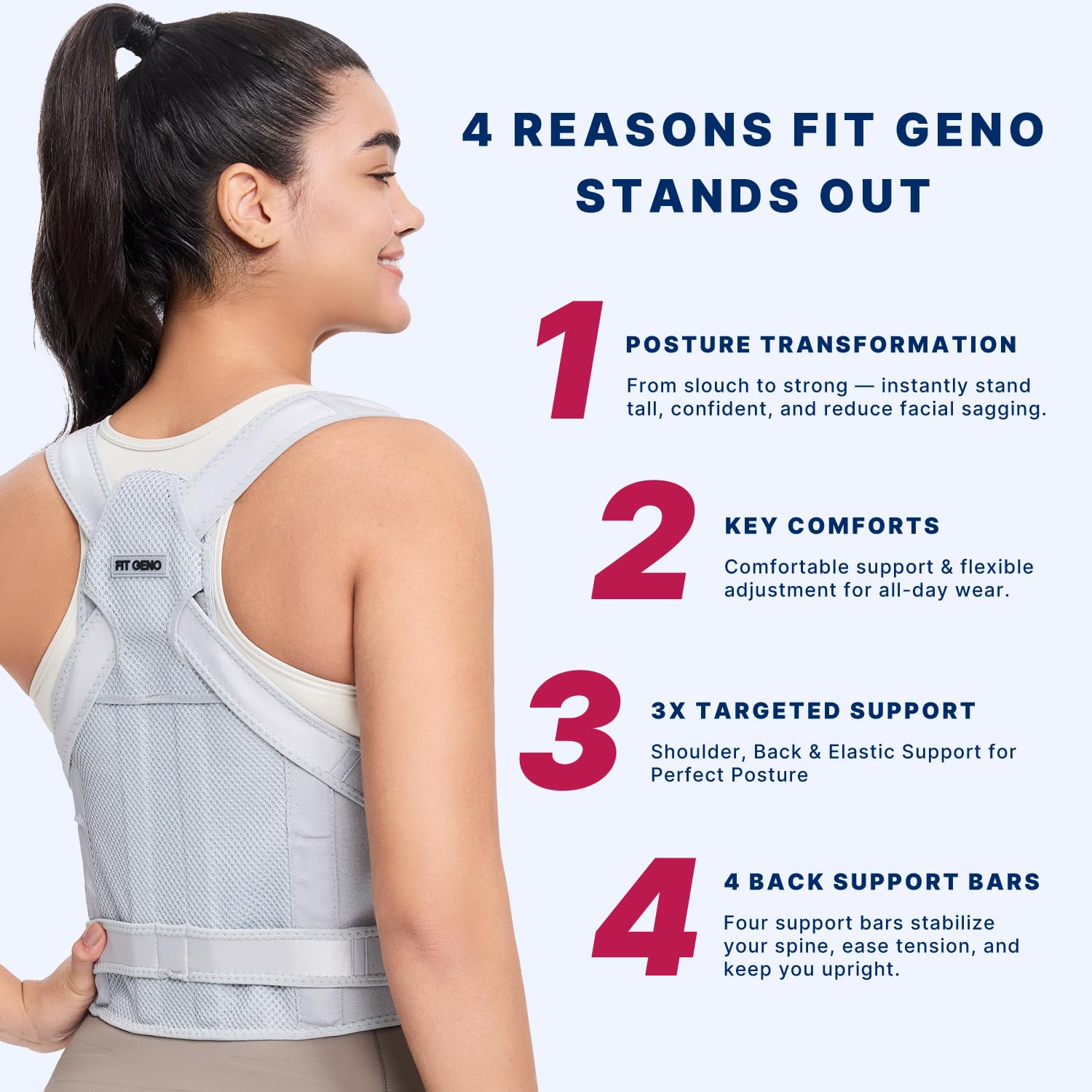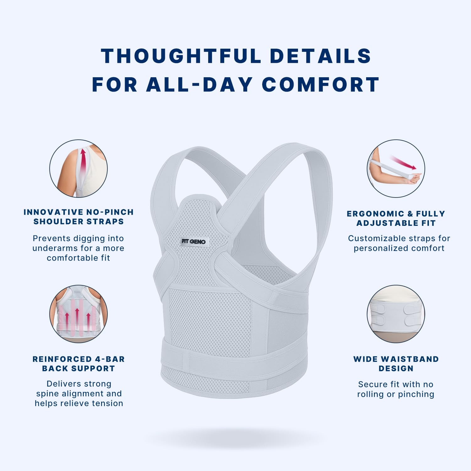 SUPERIOR POSTURE SUPPORT: Designed for men and women, Fit Geno posture corrector improves posture comfortably without underarm discomfort, helping you stand taller and feel confident.