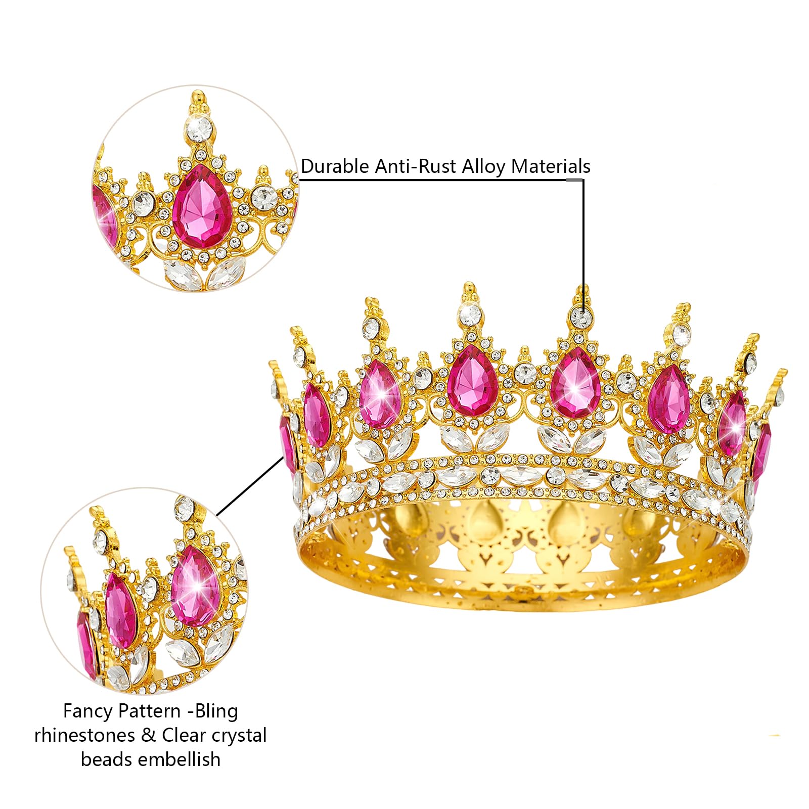 SIZE - 2.7 inches (7 cm) in height, 5.9 inches (15 cm)in diameter. Full crown design, crafted specifically to fit women head size and perfectly fit in your glamorous hairstyles.
