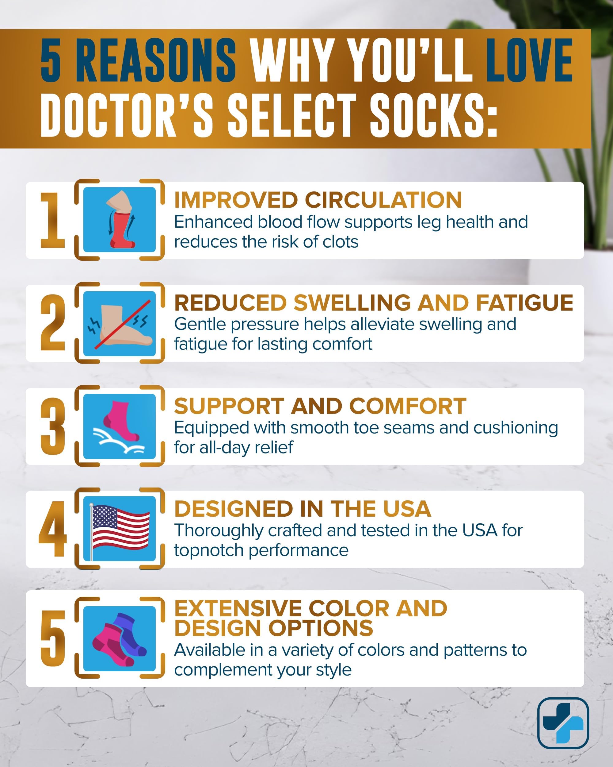 Ultimate Leg Comfort - Discover true comfort with Doctor's Select Copper Compression Socks for Women and Men designed to manage blood flow and pain from varicose veins, edema, pregnancy, and other conditions.