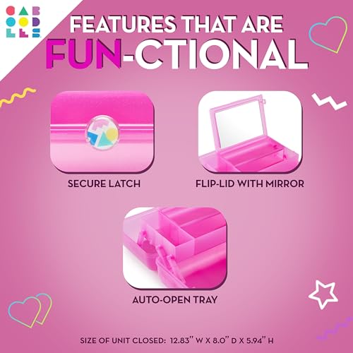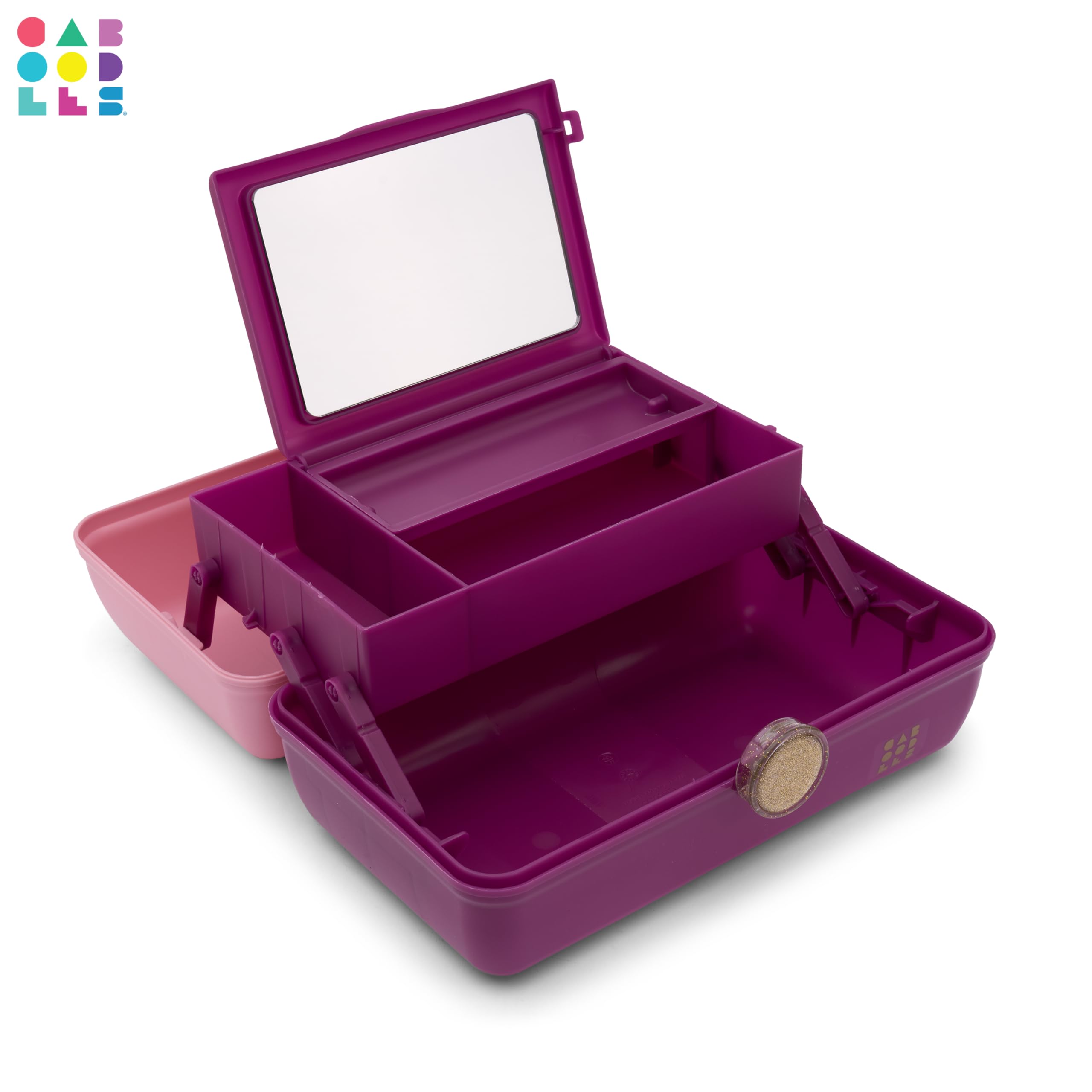 Description The classic On-The-Go Girl case offers a retro feel with practical design. Its top features an auto-open tray, flip lid with mirror, and a divided tray for organizing essentials. The spacious bottom accommodates larger items like makeup palettes and brushes. With a sturdy build and secure latch, it's ideal for travel. This versatile organizer suits makeup, skincare, hair accessories, school supplies, crafts, or any items you want to keep sorted. Its sleek design evokes nostalgic Caboodles' charm, appealing to both new and longtime fans.