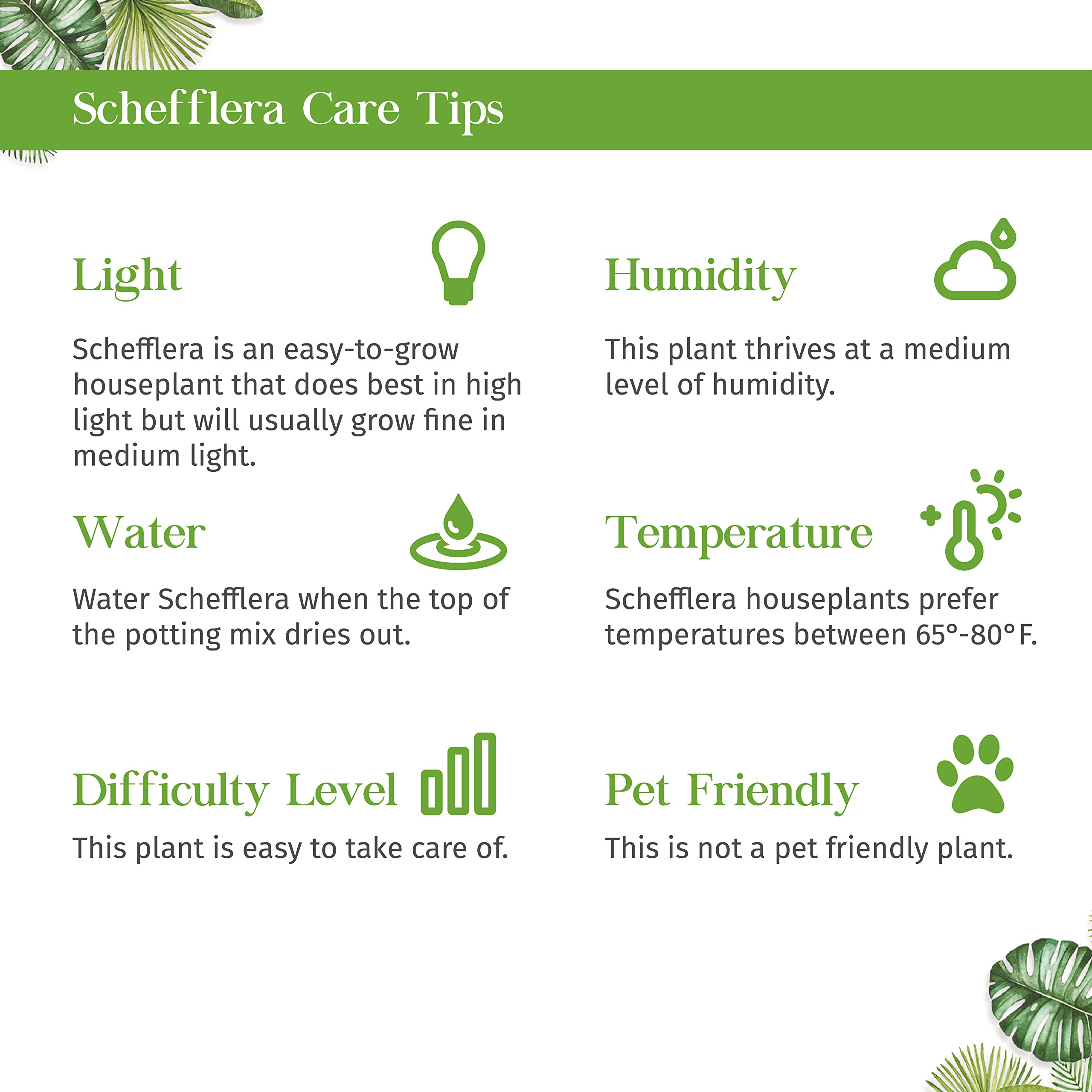Dwarf umbrella tree care! Scheffleras are a flowering plant in the family Araliaceae. Schefflera is an easy-to-grow in medium light. Water Schefflera when the top of the potting mix dries out. Schefflera houseplants prefer temperatures between 65°-80° F.