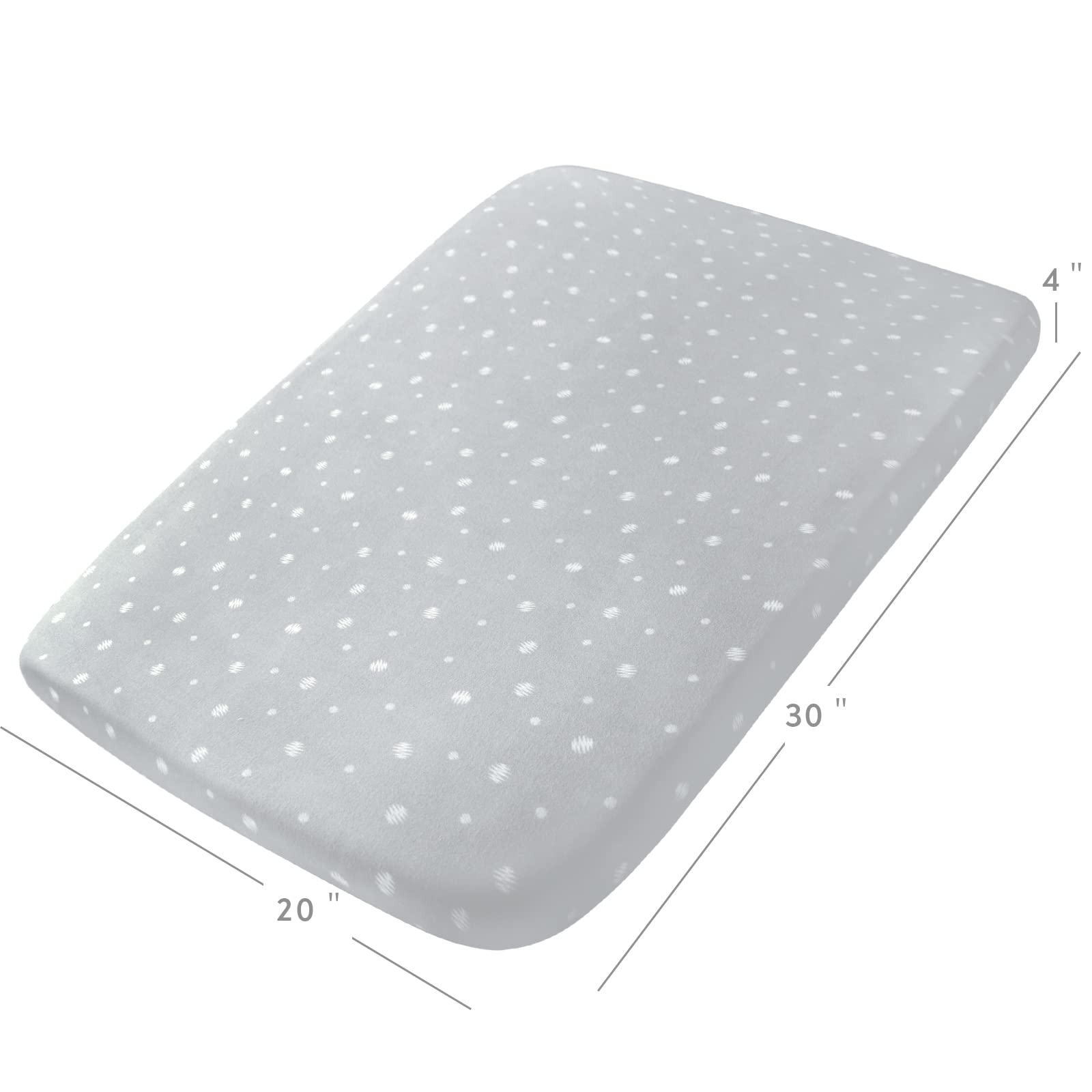 ❤ Fitted Sheet: Measures 20" x 30" x 4". The elastic band design ensure the bassinet sheet fit tightly with the mattress and remain flat and do not move, creating a safe and comfortable sleeping environment for the baby.