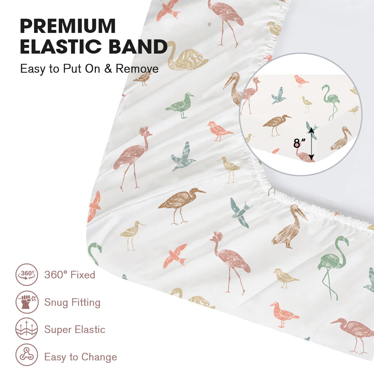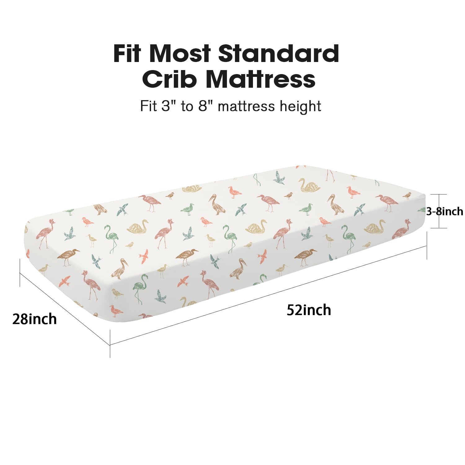 PERFECT FIT - Measures 28"x52"x8", this crib fitted sheets fit most standard crib and toddler bed mattresses well. 8" deep pocket and high-quality elastic around entire bottom edge ensures a snug fit while secure the luxury mattress
