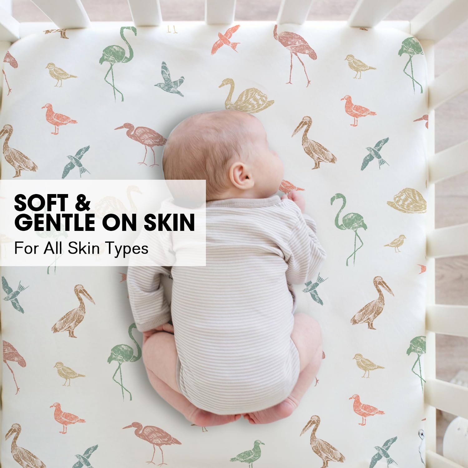 PREMIUM QUALITY - The baby crib sheets is made of ultra soft microfiber, luxuriously skin-friendly, cozy fabric touch, does not irritate baby's delicate skin. Your little one will feel comfy and free while they're playing or sleeping