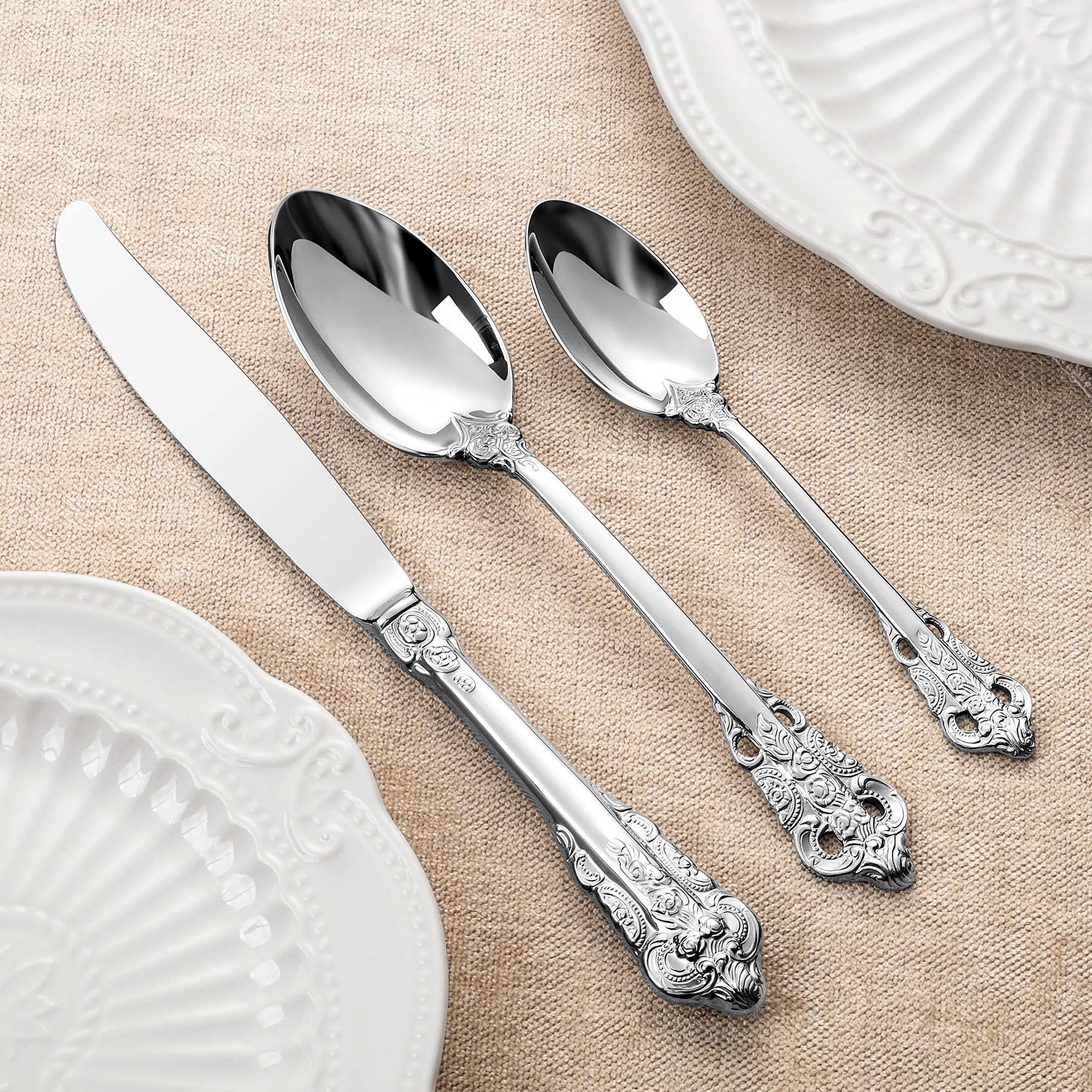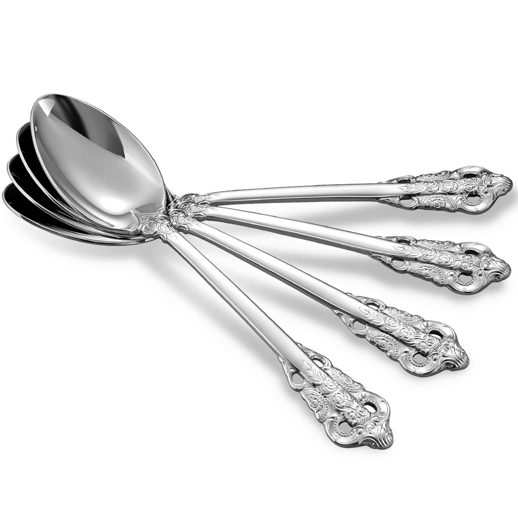 🌷4 pieces dinner spoon designed with the elegant baroque pattern, perfect for use when serving main entrees like meat and seafood.