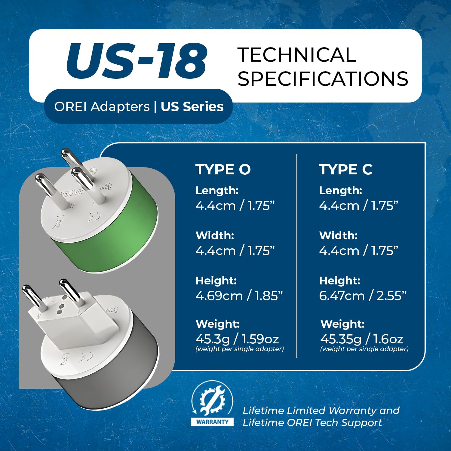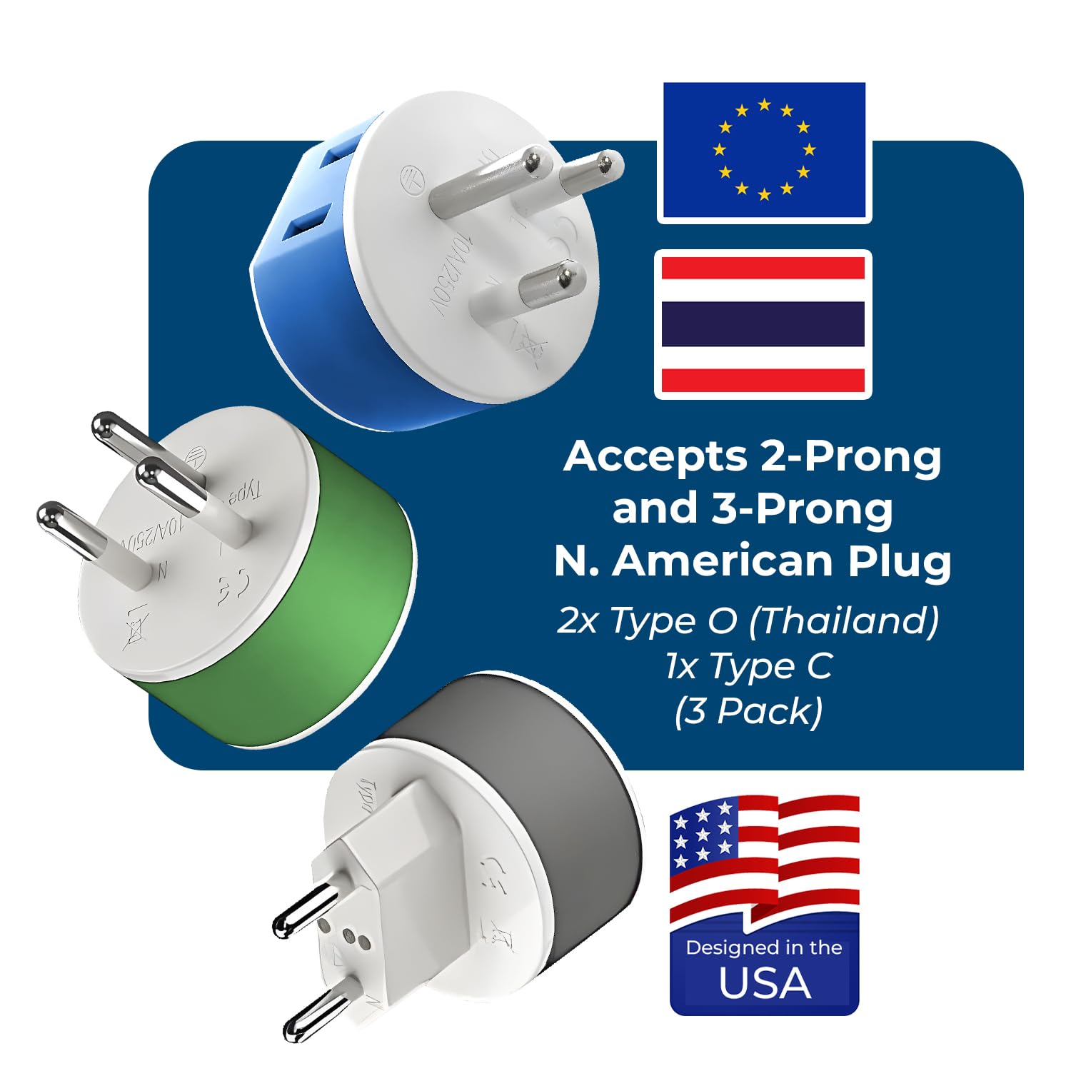 Product Description Type O - the rounded pin plug is a new standard in Thailand. The Orei type O best Adaptor for wall offers a reliable and easy connection for devices with a North American plug or polarized (one blade is wider than the other). The Ultra compact size of this adapter makes it an ideal adapter for your travel needs. It includes 1 Type C and 2 x Type O in the package now. Works in Thailand new standard. Please make sure that your device supports 100-240V when traveling overseas in order to use with this adapter. Manufacturer Contact Information [email protected]
