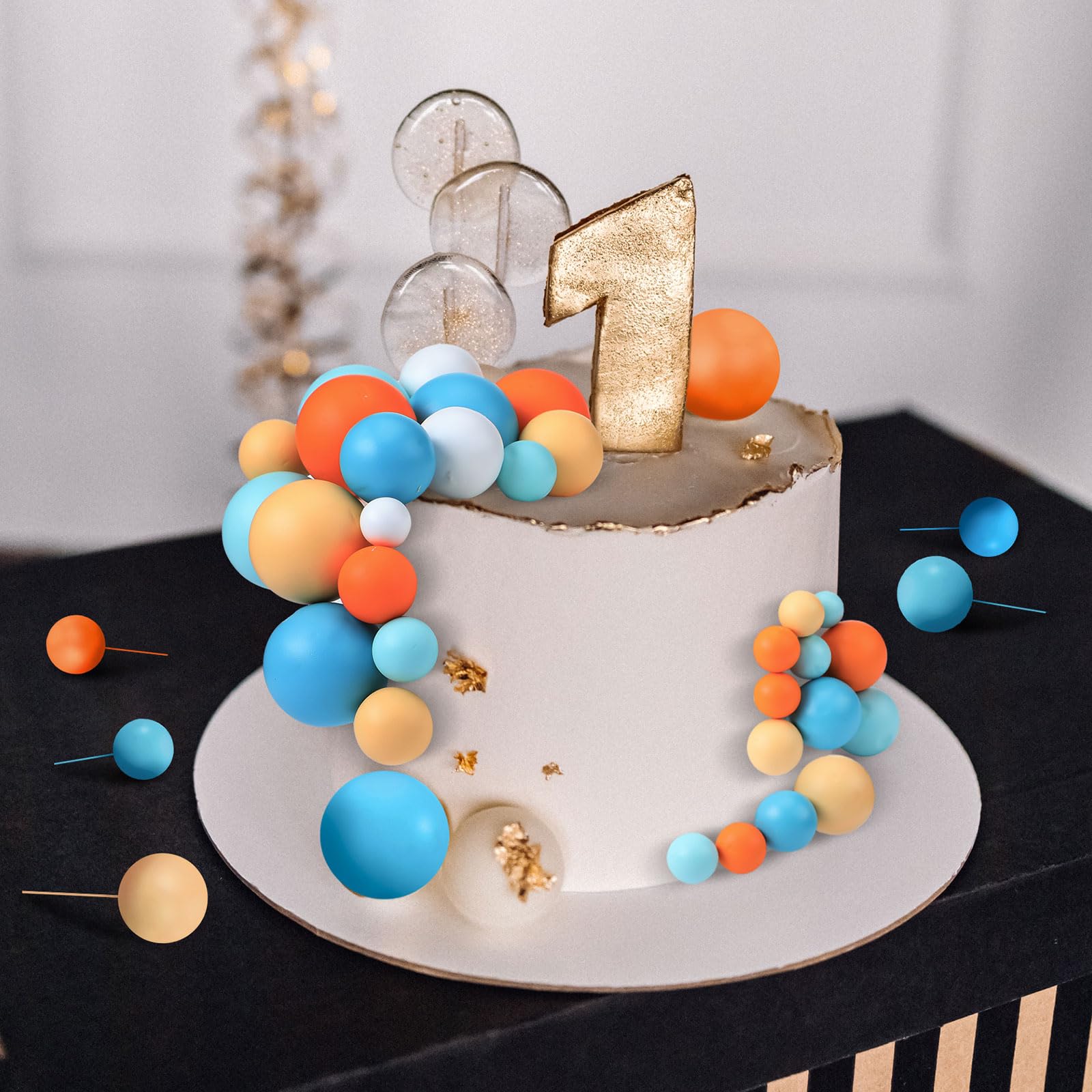 Sturdy Material: the ball shaped cake topper is made of foam and iron wire rod, safe and reliable, not easy to break or deform; It suits your DIY cakes or art crafts