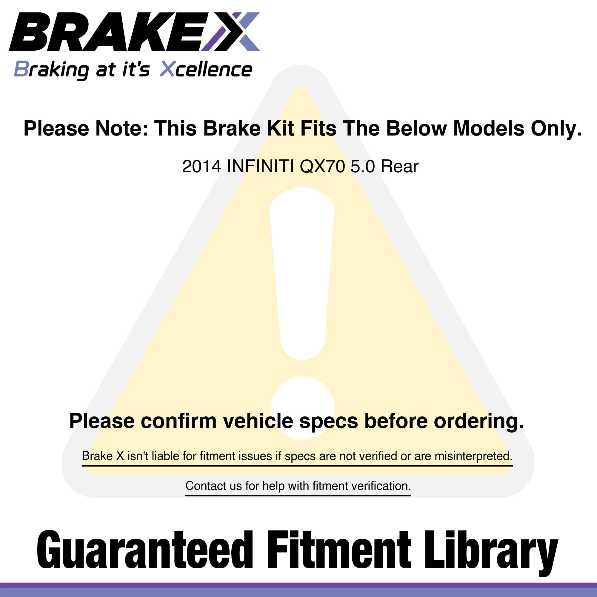 Get The Right Fit: The rear replacement brakes and rotors kit are built for 2014 QX70 (5.0 L)