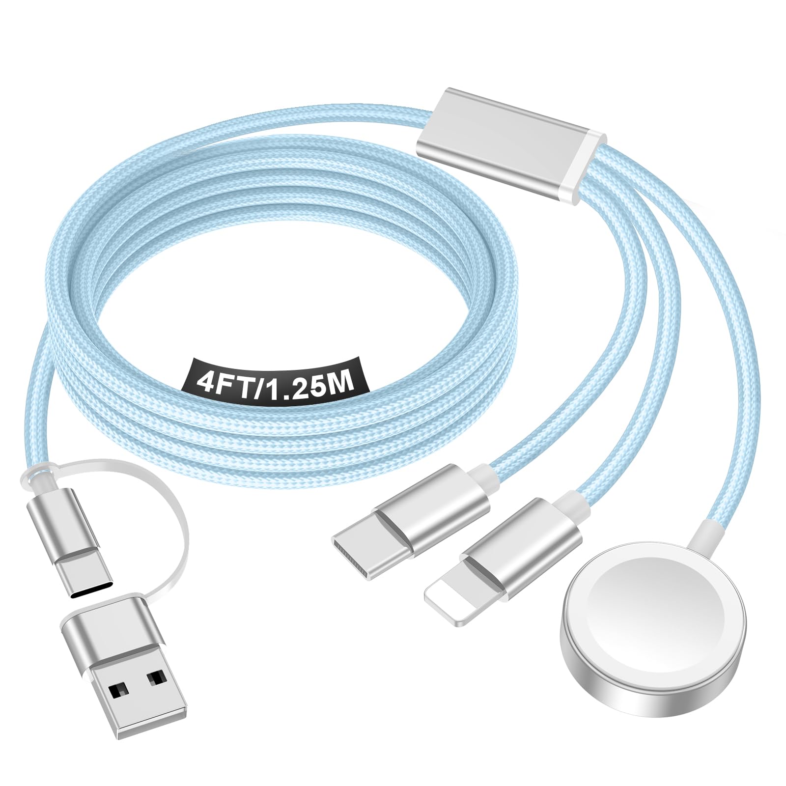 【Advanced Safe & Rapid Charging】Experience enhanced safety and speed,delivering efficient power to your devices.This certified multi charger cable supports USB Type C cable fast charging and USB lightning cable compatibility, delivering rapid power to iPhone cable, USB C cable pack, and for Apple Watch.