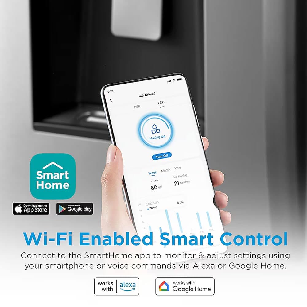 - Dual Ice Maker with Water and Ice Dispenser - Fingerprint Resistant - Standard Depth - LED Interior Lighting - Door Alarm