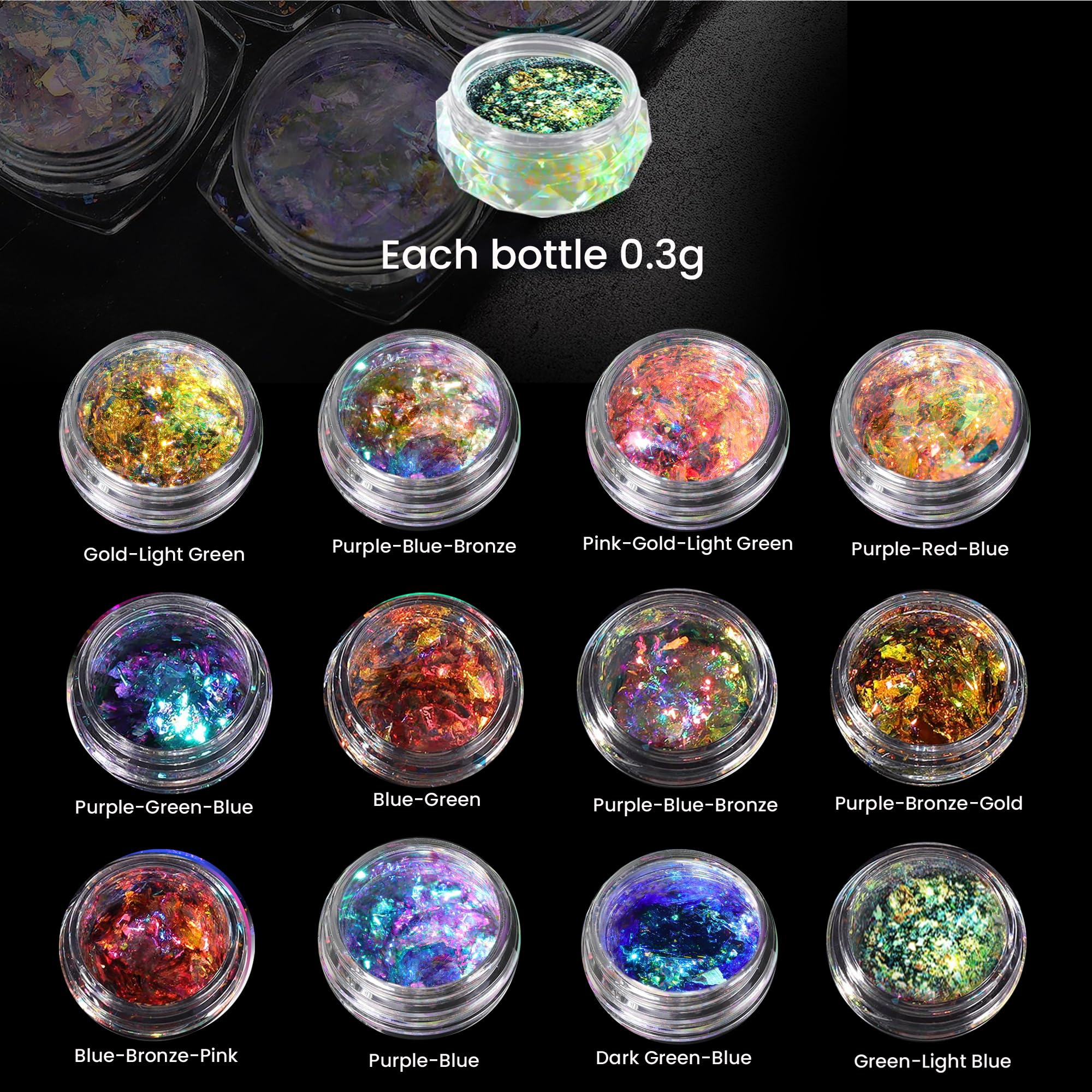【 ❤️ CHAMELEON FLAKES 】- The set includes 12 chameleon flakes, Each jar contains 0.3g bottles covering hues of all shades of Blues, Greens, Violets, Purples, Cyans, Golds, Brown, Pink, Copper. Highest quality chameleon flakes for resin have a color shift effect and are the highest grade of flakes available online! This unique flake will give off multiple colors in one piece. You'll need just a little to produce rich and vivid colors.