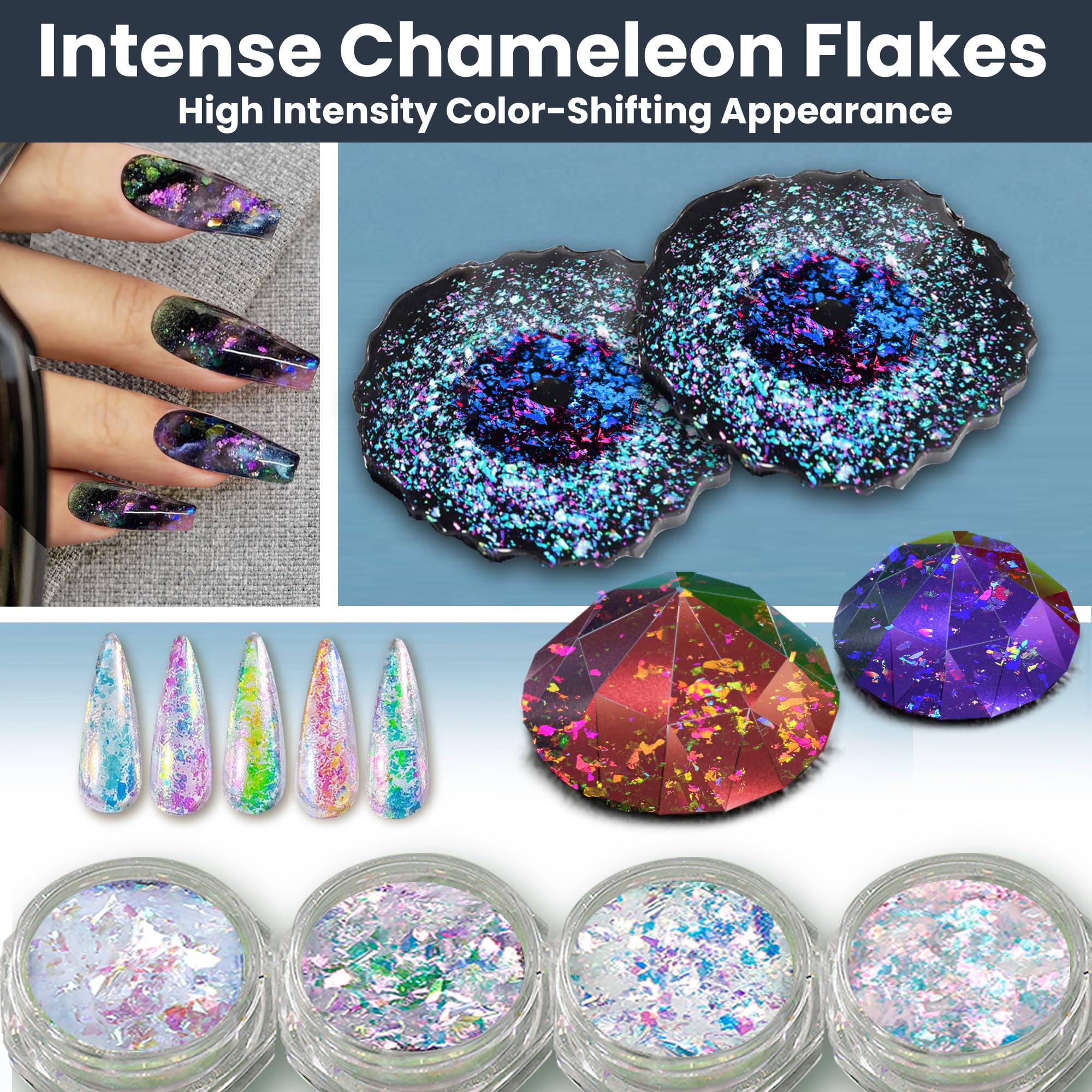 【 💚 CHROME FLAKE QUALITY 】- Color shift chroma flakes are perfect for chrome Painting, Candle Making, Bath Bombs, Soap Colorant, Slime Making. Chameleon mica powder for epoxy is ideal for the nails, eyeshadow, crafts, hair, face, body, festivals, and raves.