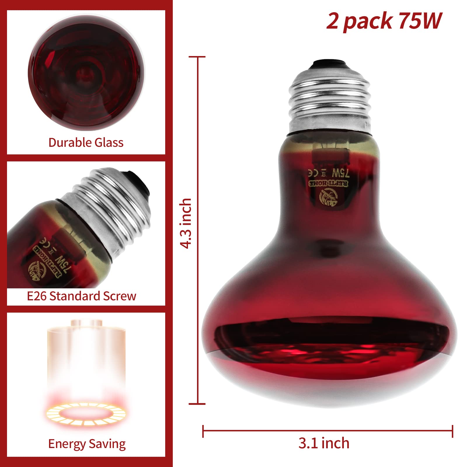 Infrared Heat Lamp-REPTI HOME red infrared heat lamp provides a powerful source of infrared heat emissions for animal pets(chickens reptile pets) requiring heat at day and night without light output generated by infrared lights.
