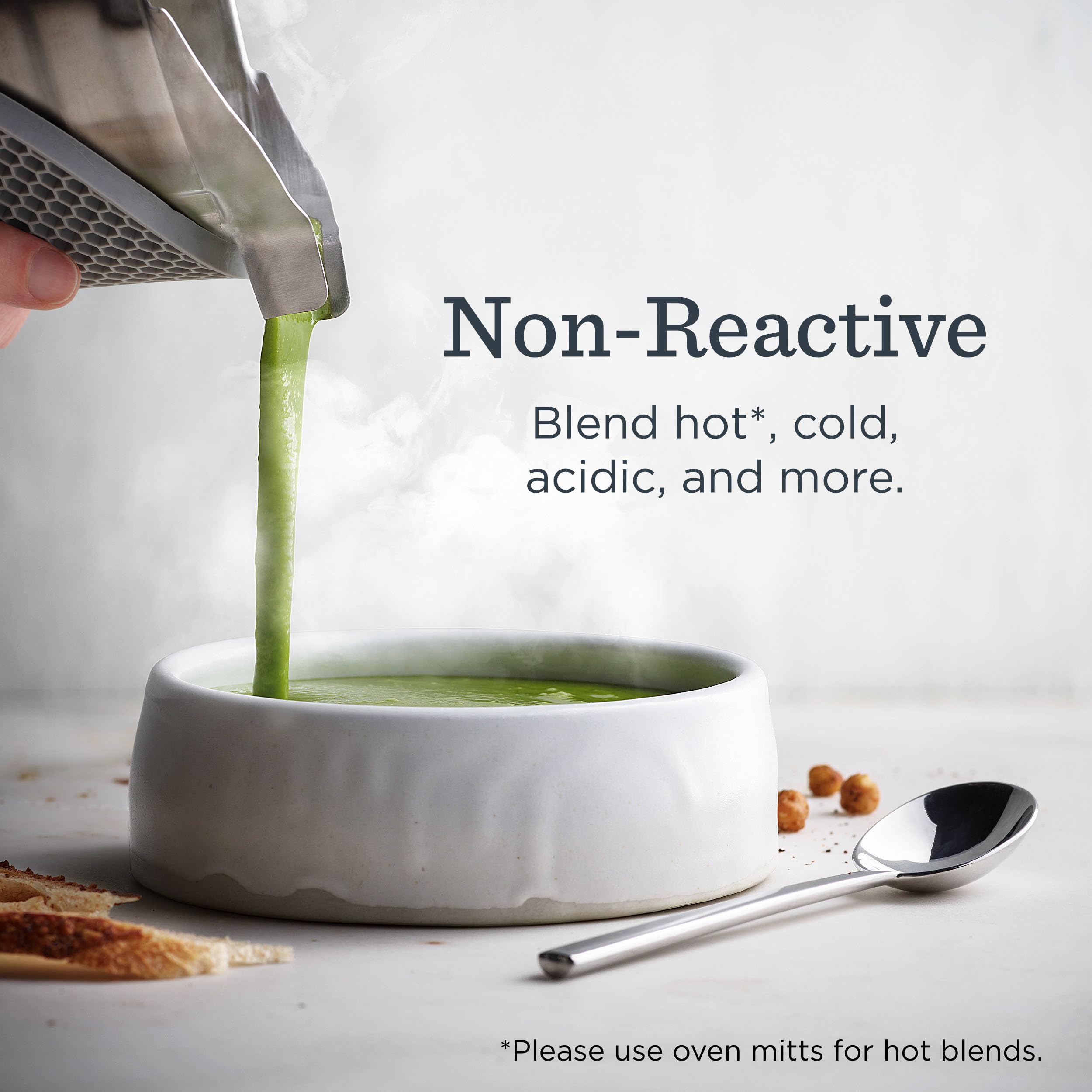 Odor- and Stain-Resistant: Leave past blends in the past with this non-reactive stainless-steel blending container that resists stains and odors and lets you blend ingredients that are hot, cold, and acidic