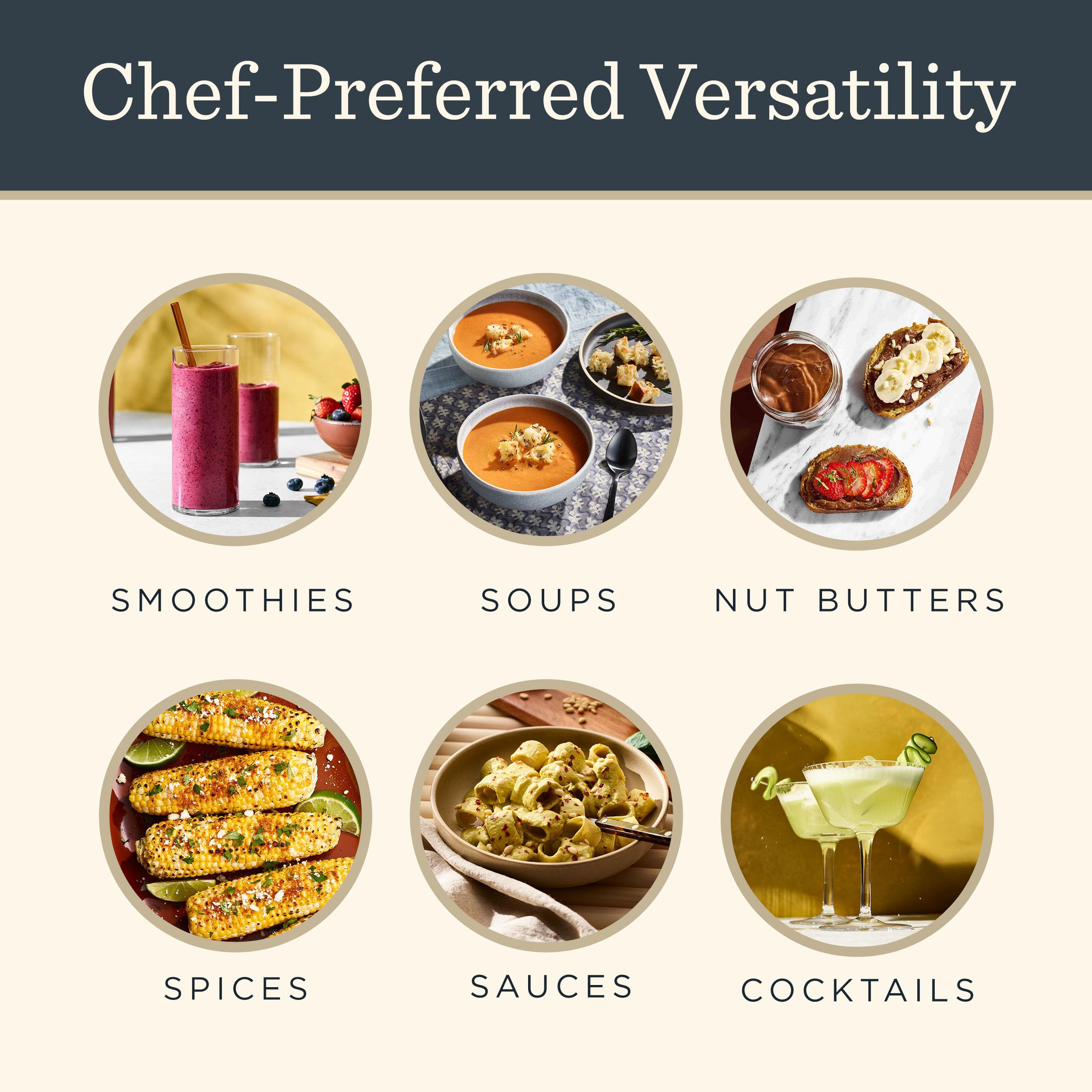 Stainless-Steel Blades: Laser-cut, stainless-steel blades can power through fibrous produce and frozen fruit, crush ice and nuts, and much more, offering consistent blends for years