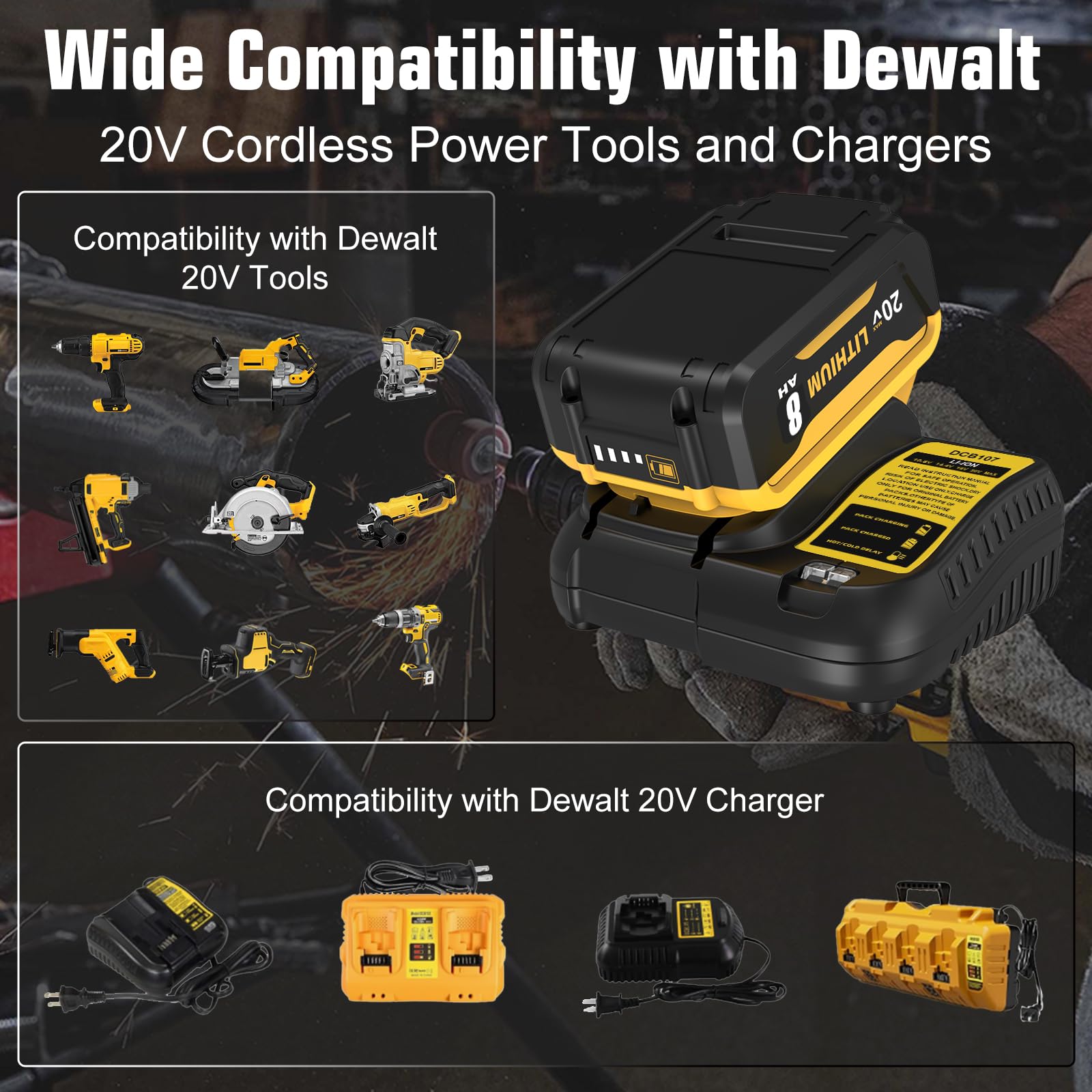 【Wide Compatibility】Replacement for dewalt battery 20v is compatible with dewalt 20 volt battery DCB201,DCB203,DCB204,,DCB206,DCB207,DCB200,DCB180 ect.Also the replacement is compatible with dewalt 20v tools and dewalt 20v battery charger.