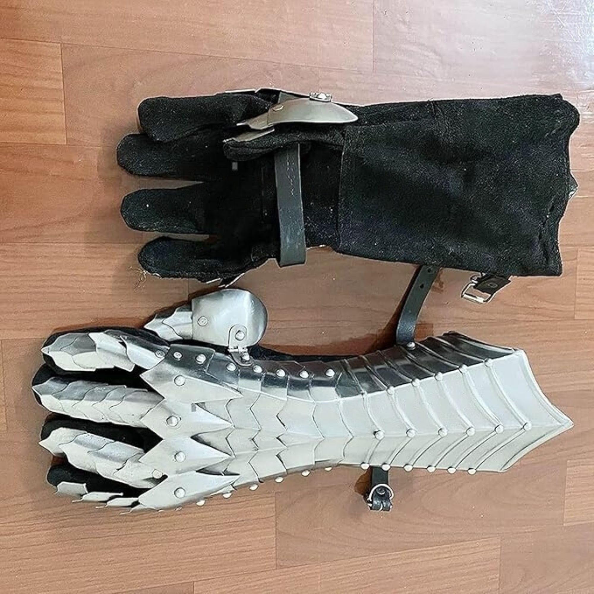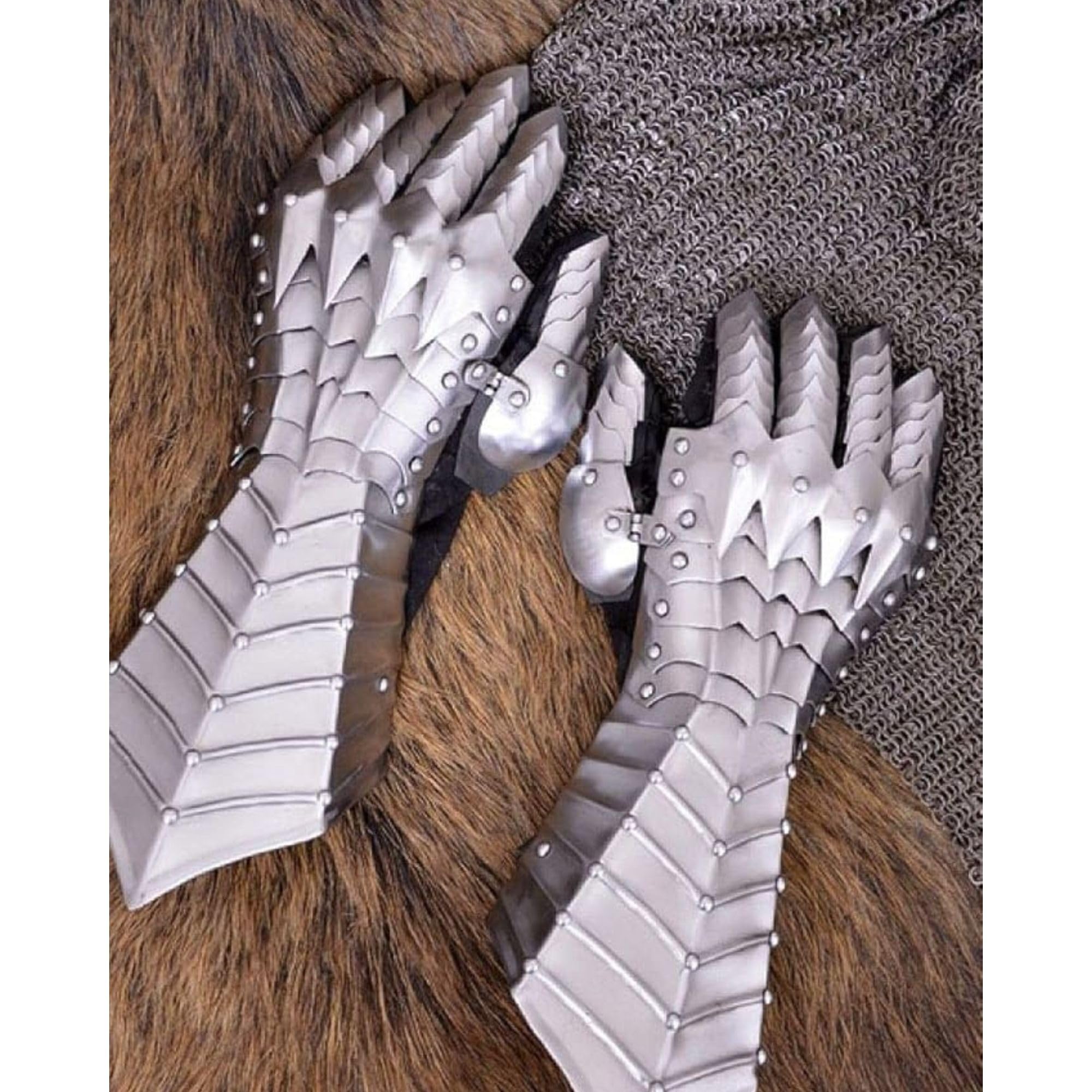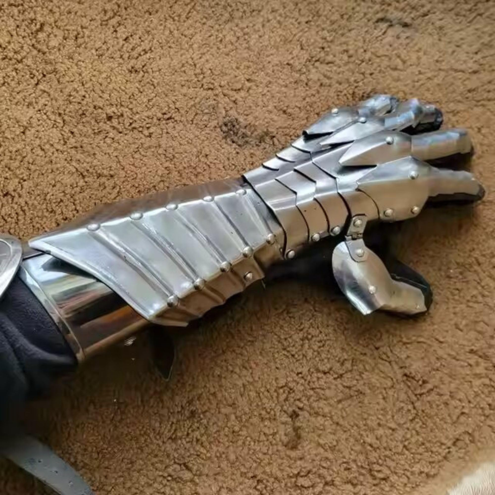 Made of :-18 Gauge Iron,The gauntlet has rivets and 58 independent and articulated parts