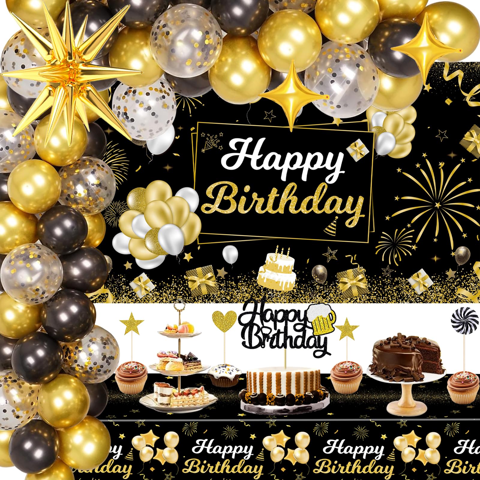 Black and Gold Birthday Decorations: Our birthday decorations with backdrop banner, tablecloth, balloons arch are definitely a perfect birthday gift for him. Black and Gold theme decorations are suitable for men’s birthdays party.