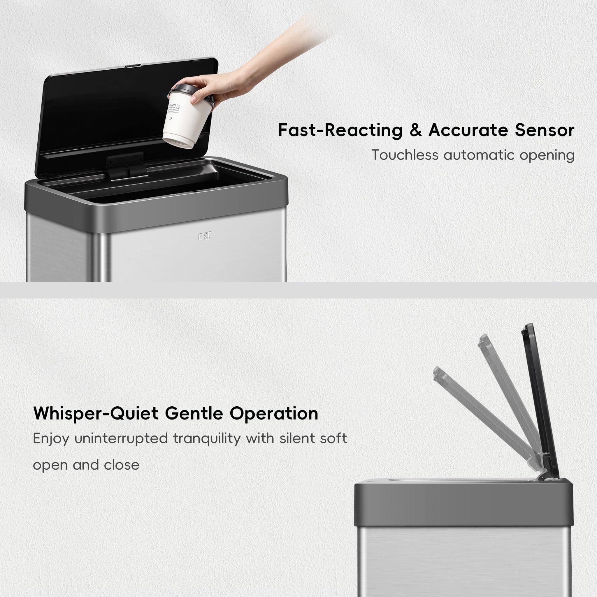 Premium Motion Sensor Technology - Experience the smoothest, most seamless lid opening and closing technology with this EKO hands-free automatic trash can.