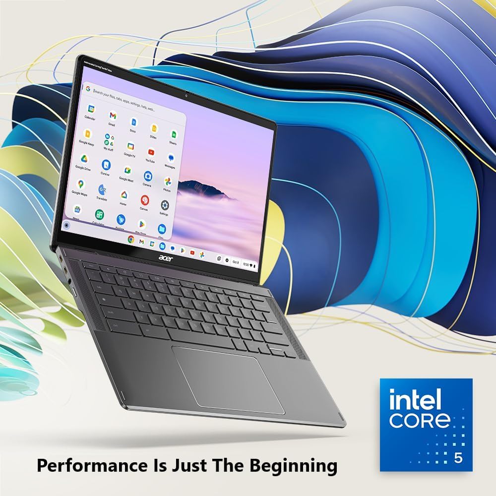 We sells computers with upgraded configurations. If the computer has modifications (listed above), then the manufacturer box is opened for it to be tested and inspected and to install the upgrades to achieve the specifications as advertised. If no modifications are listed, the item is unopened and untested. Display: 14.0" Touch WQXGA LED-backlit IPS display Processor: Intel Core i5-1334U Processor, 3.4GHz - 4.6GHz Graphics: Intel UHD Graphics Operating system: Chrome OS Memory: 8GB LPDDR5X Onboard Memory Hard Drive: 512GB PCIe Solid State Drive Webcam: 1080p Features: Backlit Keyboard; DTS Audio Connectivity: Wi-Fi 6E AX211 2x2 MU-MIMO, Supports Bluetooth 5.2 Ports & Slots: 2 - USB Type-C Port USB 3.2 Gen 2 (up to 10 Gbps) DisplayPort over USB Type-C & USB Charging (Up to 65W), 1 - USB 3.2 Gen 1 Type-A port, 1 - HDMI 1.4 Port with HDCP Support, 1 - 3.5mm combo jack (headphone/speaker), 1 - Kensington Lock (Nano Type) Weight: 3.31 lbs Color: Gray Dimensions: 12.59 (W) x 9.05 (D) x 0.82 (H) inches Accessories: w/ 128gb 9H Docking Station