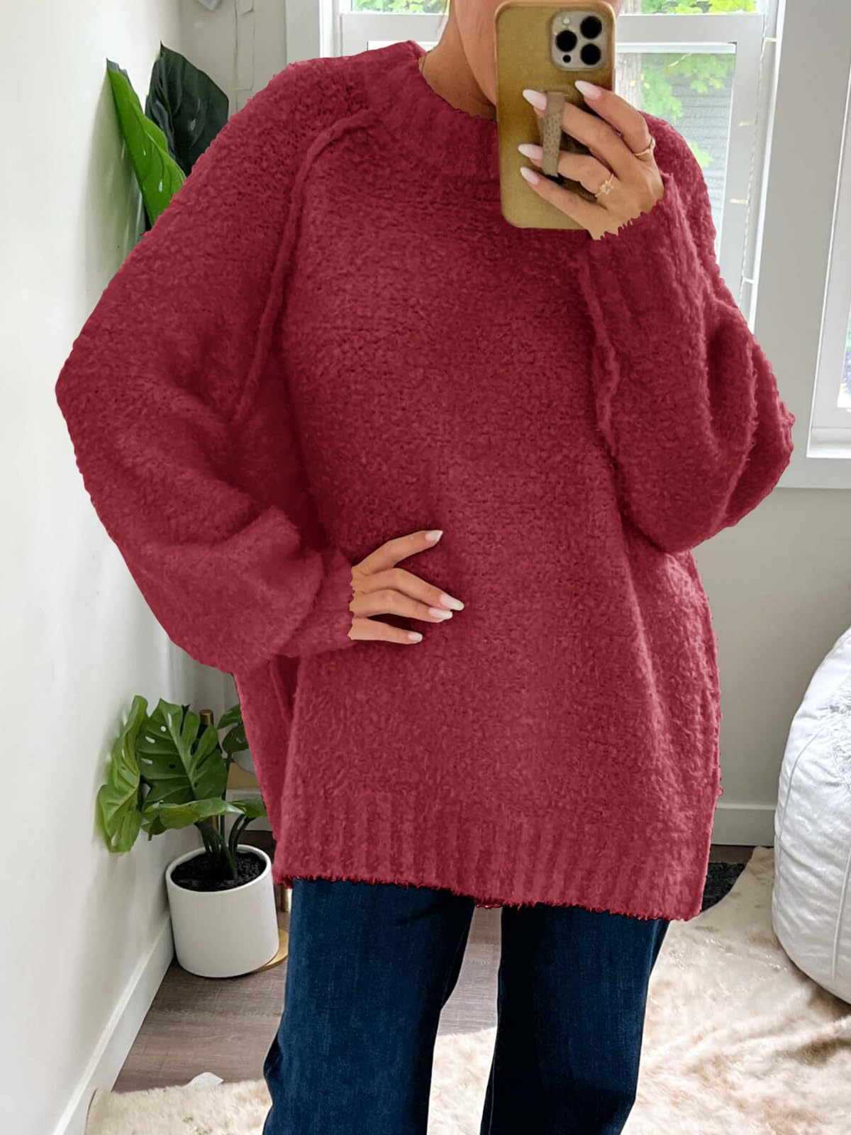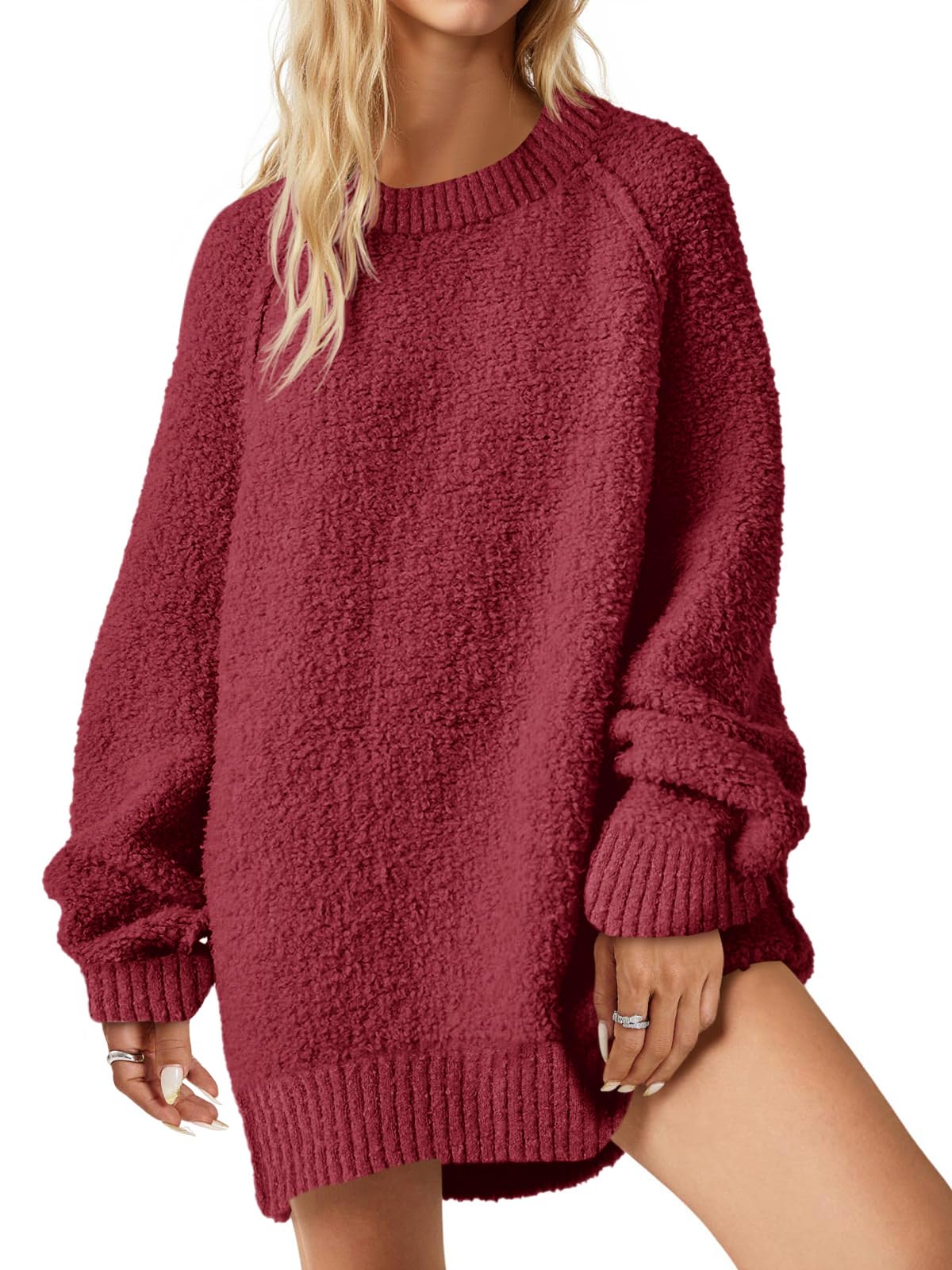 Features: Fuzzy fabric, oversized, long sleeve, ribbed knit hem, crew neck, drop shoulder, casual slouchy style, loose fit, solid color. The fuzzy sweater for women is good for early spring, fall and winter days.