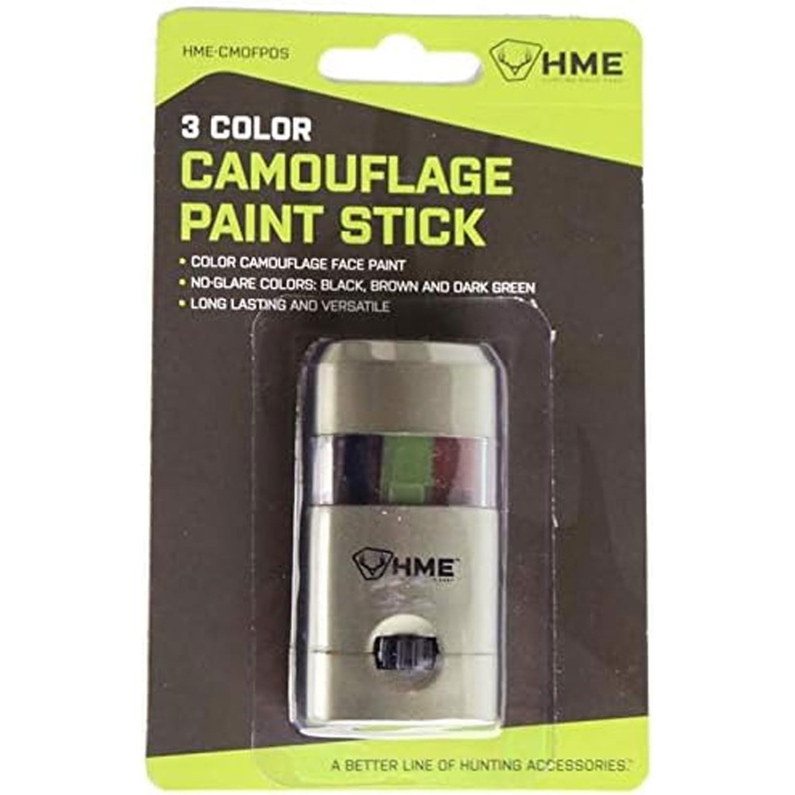 HME 3 COLOR CAMO FACE PAINT "MESS-FREE" APPLICATION STICK: The HME 3 Color Camo Face Paint "Mess-Free" Application Stick is a highly practical and innovative solution for individuals who require effective camouflage during outdoor activities, particularly hunting and military operations. This product comes in a convenient stick format, offering a quick and hassle-free way to apply camouflage without the mess typically associated with traditional face paint. This product is versatile and can be used for a variety of outdoor activities, including hunting, wildlife photography, birdwatching, camping, and military training. Whether you require effective concealment for tactical operations or simply want to immerse yourself in the natural world, this camo face paint stick is a reliable choice. MAIN FEATURES: - 3-color design case cover slide/switch; - Easy application in a compact case. ABOUT BRAND: Founded in 2000, HME offers a diverse selection of hunting accessories and gear, catering to the needs of hunters across different environments and hunting styles. Their product range includes tree stands, ground blinds, game processing tools, hunting scent attractants, trail camera accessories, and more.