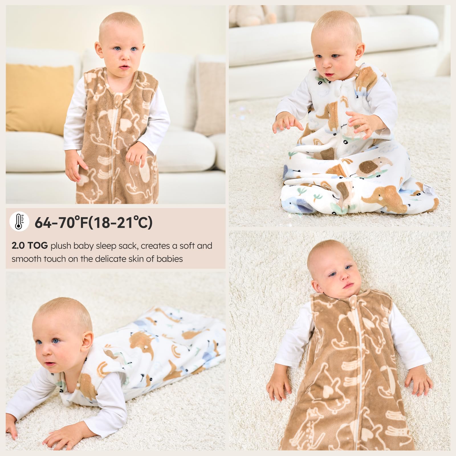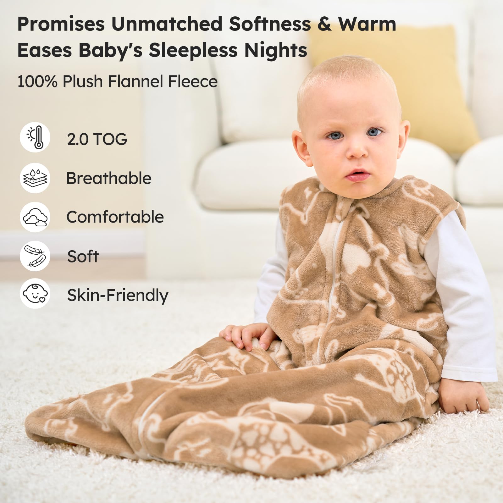 Softer & Warmer - Our 2.0 tog sleep sack is suitable for indoor temperatures of 64-70°F (18-21°C) during the fall and winter. This flannel sleep sack has a fine, soft surface fleece with a delicate, rich feel and a soft, while the interior fleece is soft and long, helping your baby lock in the warmth.