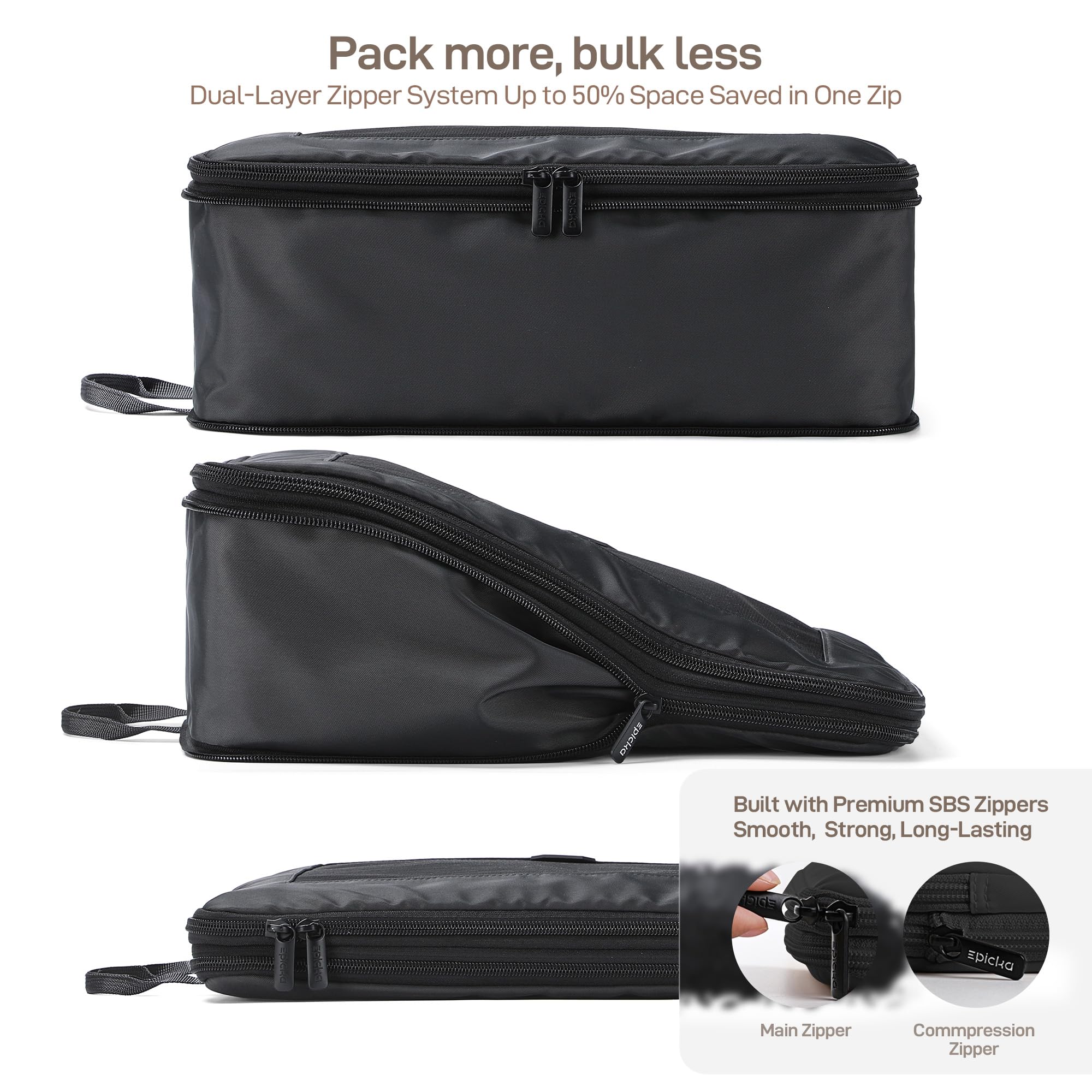 Double-Zipper Space Optimization: Dual-layer compression zippers reduce clothing volume by half, maximizing suitcase capacity for bulky sweaters or down jackets. The reinforced expansion layer prevents wrinkles on formal wear while enabling carry-ons to hold more your outfits.