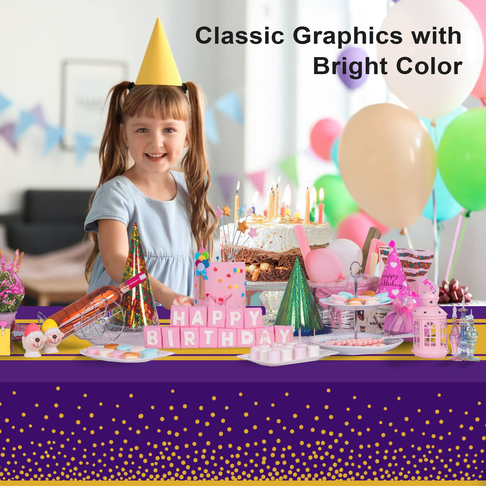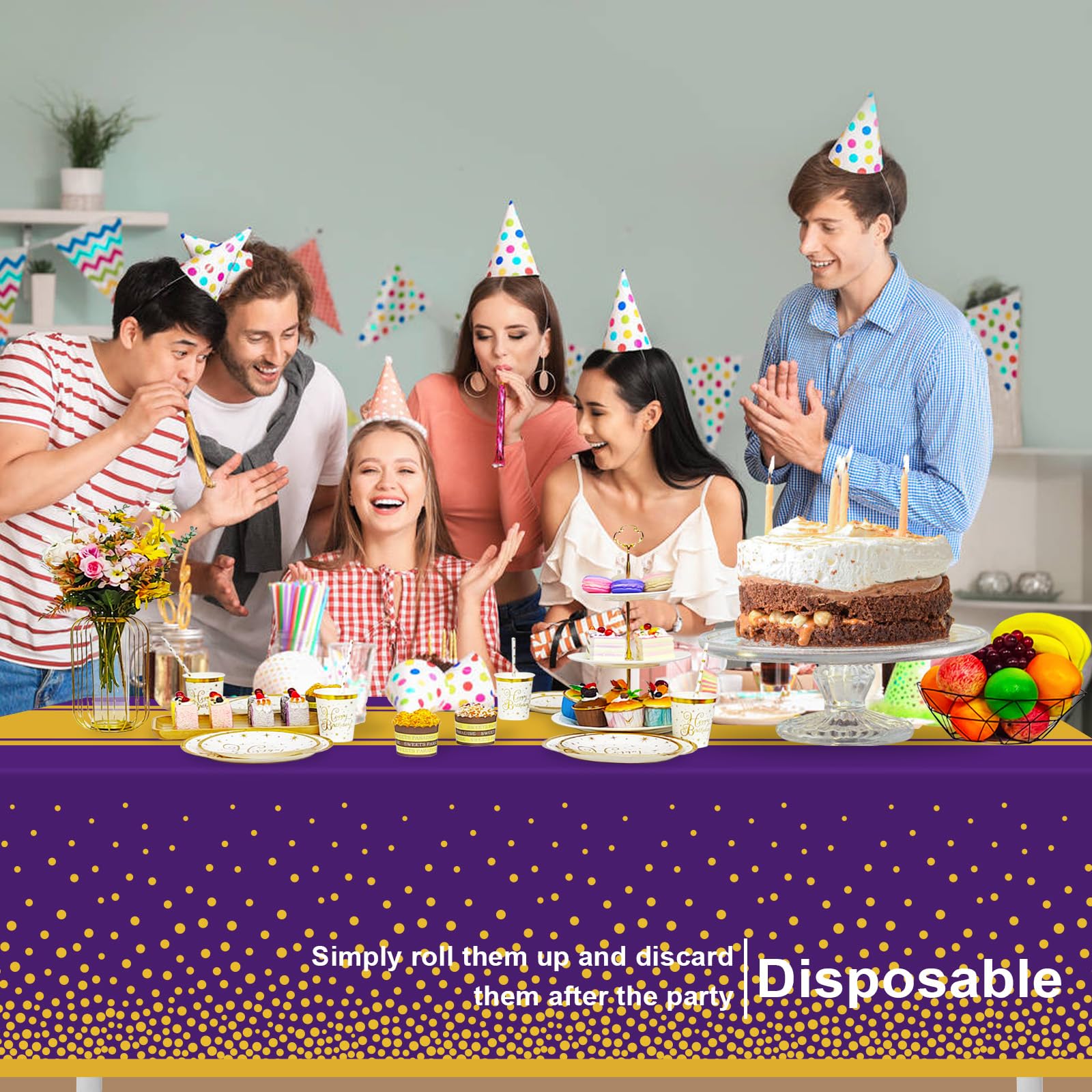 【Enjoy Your Party】The purple and gold tablecloth features a purple and gold theme to add a fun pop of color to every of your gatherings. Impress your guests throughout the party. When the party is over, you can spend more time with family or friends and less time cleaning up. A purple and gold tablecloth is a beautiful addition to any party or event