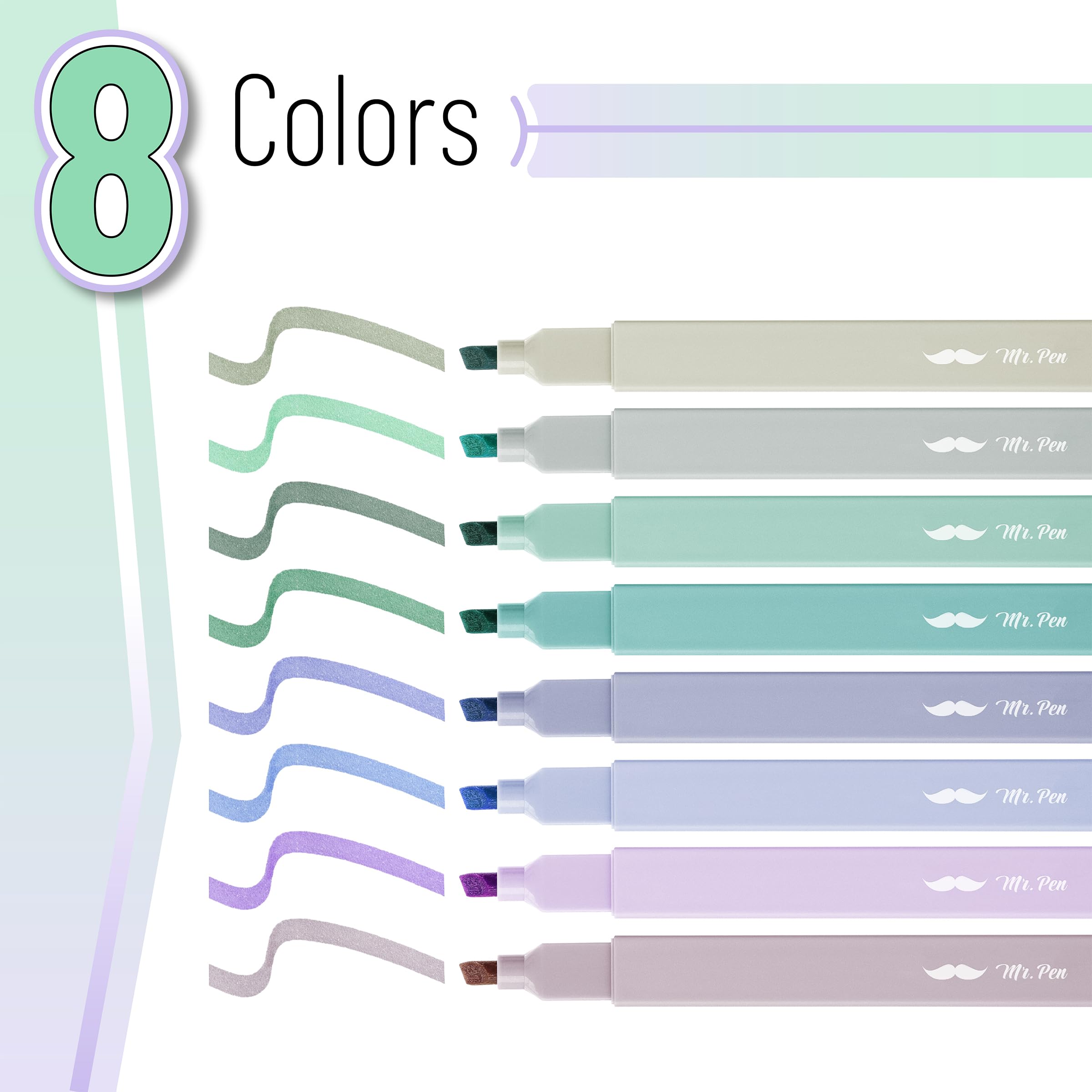 Make your notes and papers pop with our soft and gentle highlighters! This package includes 8 highlighters in non-neon, assorted colors. Our highlighters are perfect for making your work and school life a little bit brighter.