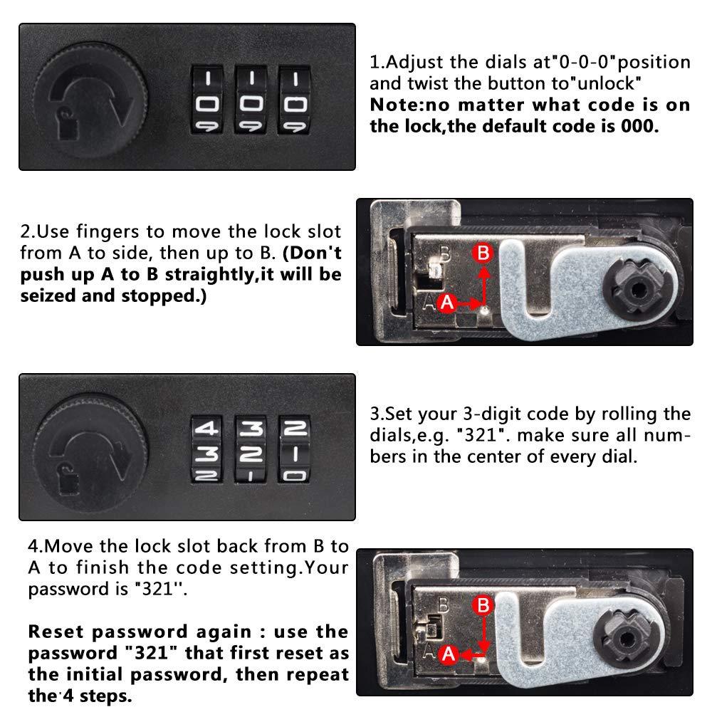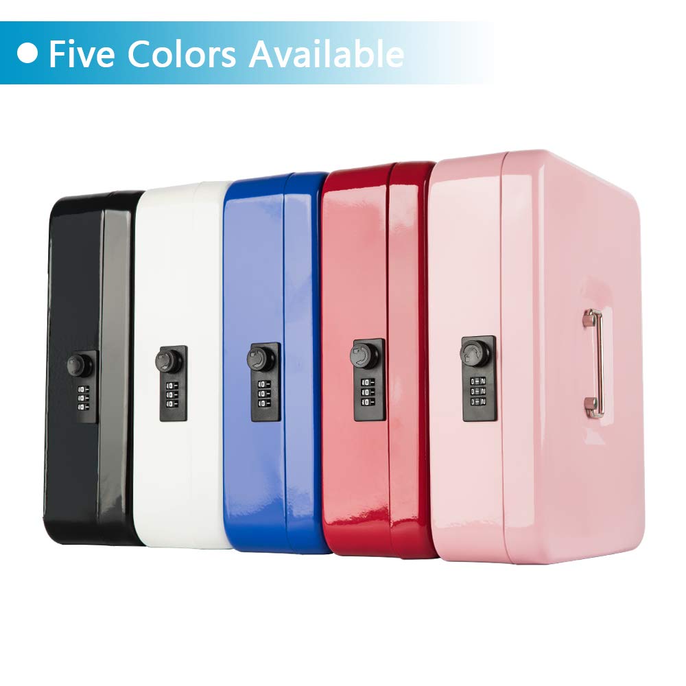 COMBINATON LOCK: Cash box has a advanced 3-number combination lock to keep valuables safe. Easy to use: The key is easy to operate,can open it no problem with one hand.A widened handle makes for easy storage and transport.