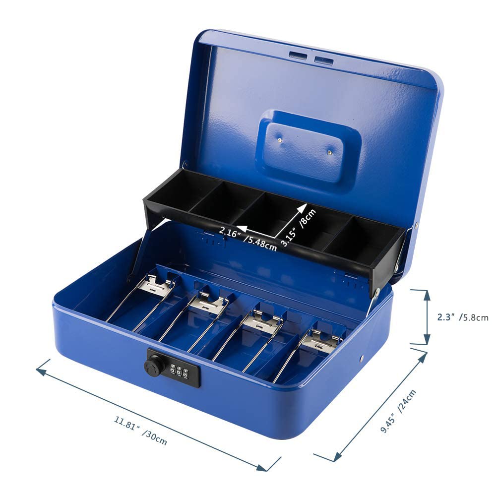 SIZE AND COLOR: 11.81"x 9.45"x 3.54" (300*240*90mm), blue. Perfect safe lock box for festivals. Smaller than some but big enough to store all the cash you need, it’s the perfect size for traveling and daily using.