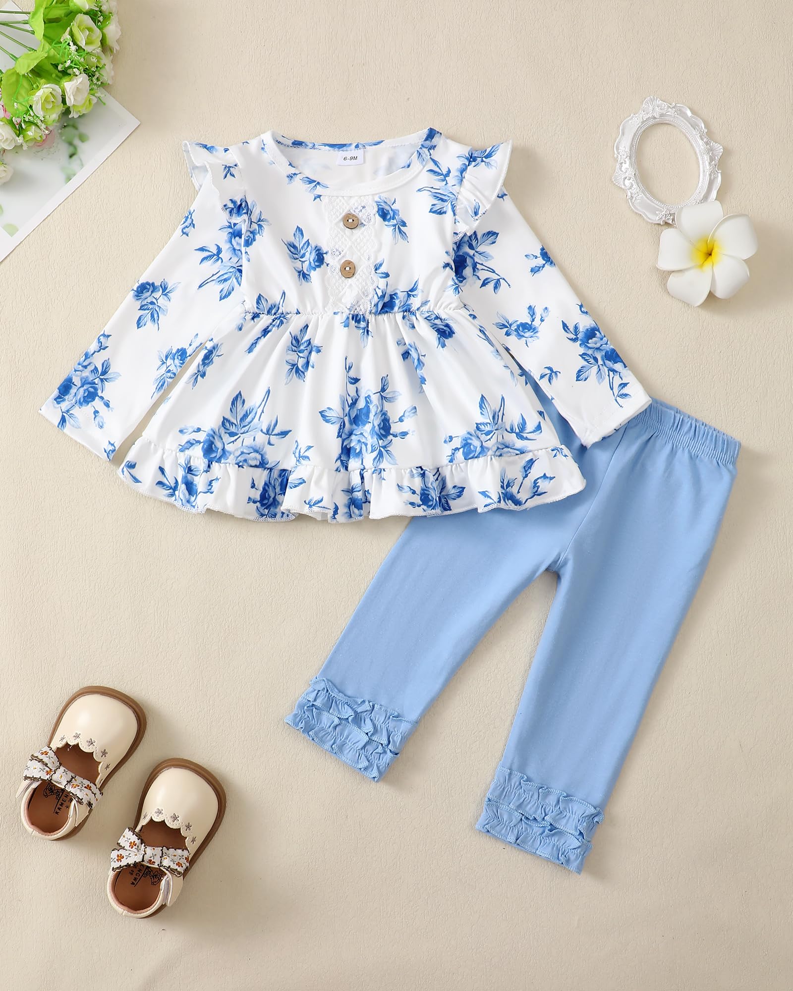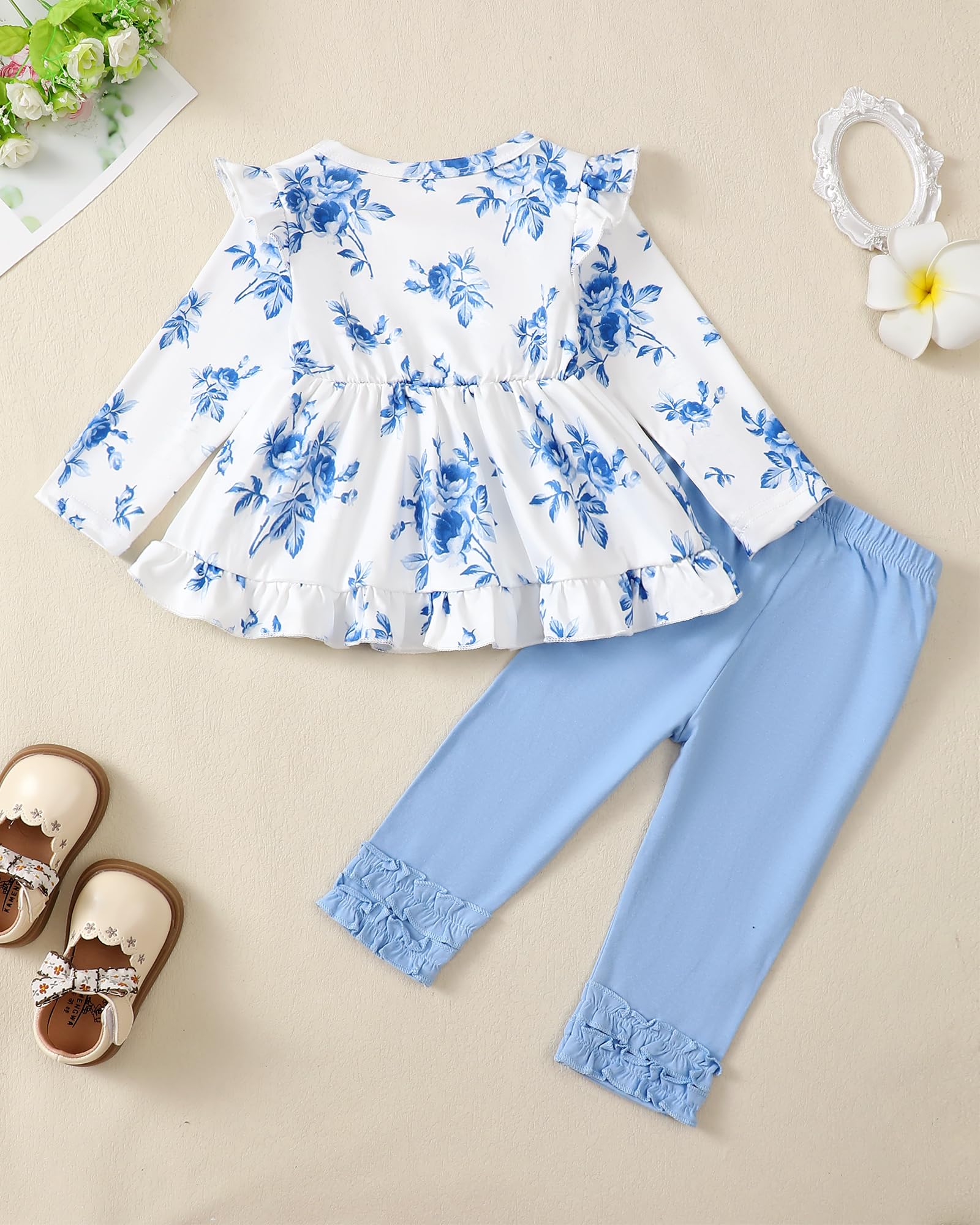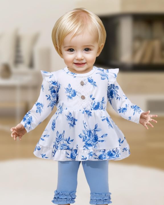 2 Pieces Outfits for Girls : 1*Baby Girl Long Sleeve Shirt +1*Long Pants.