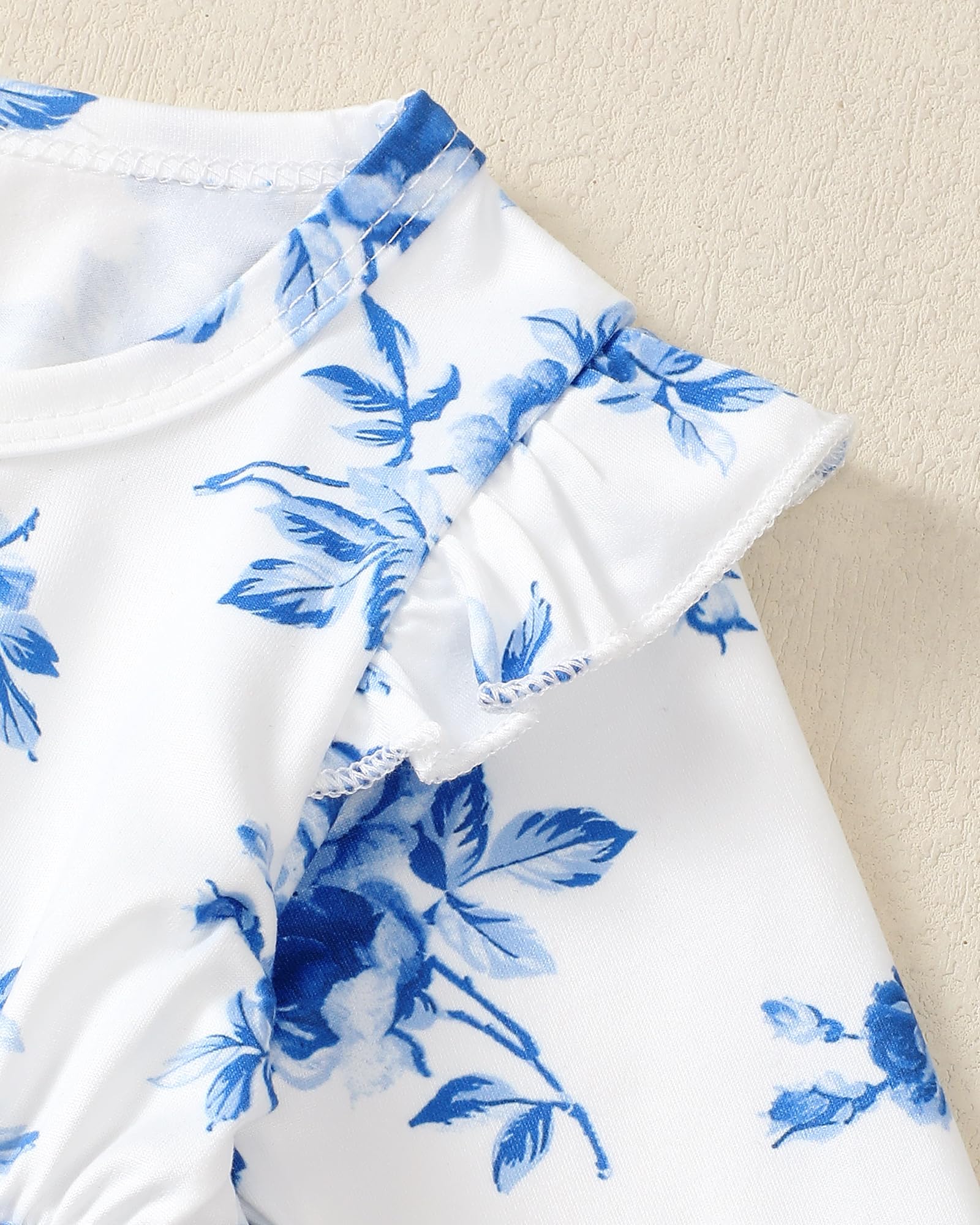 Design: Flower/Leopard/stripe/Solid long sleeve shirt, ruffle hem styles, match with ruffle pant, simple yet cute.