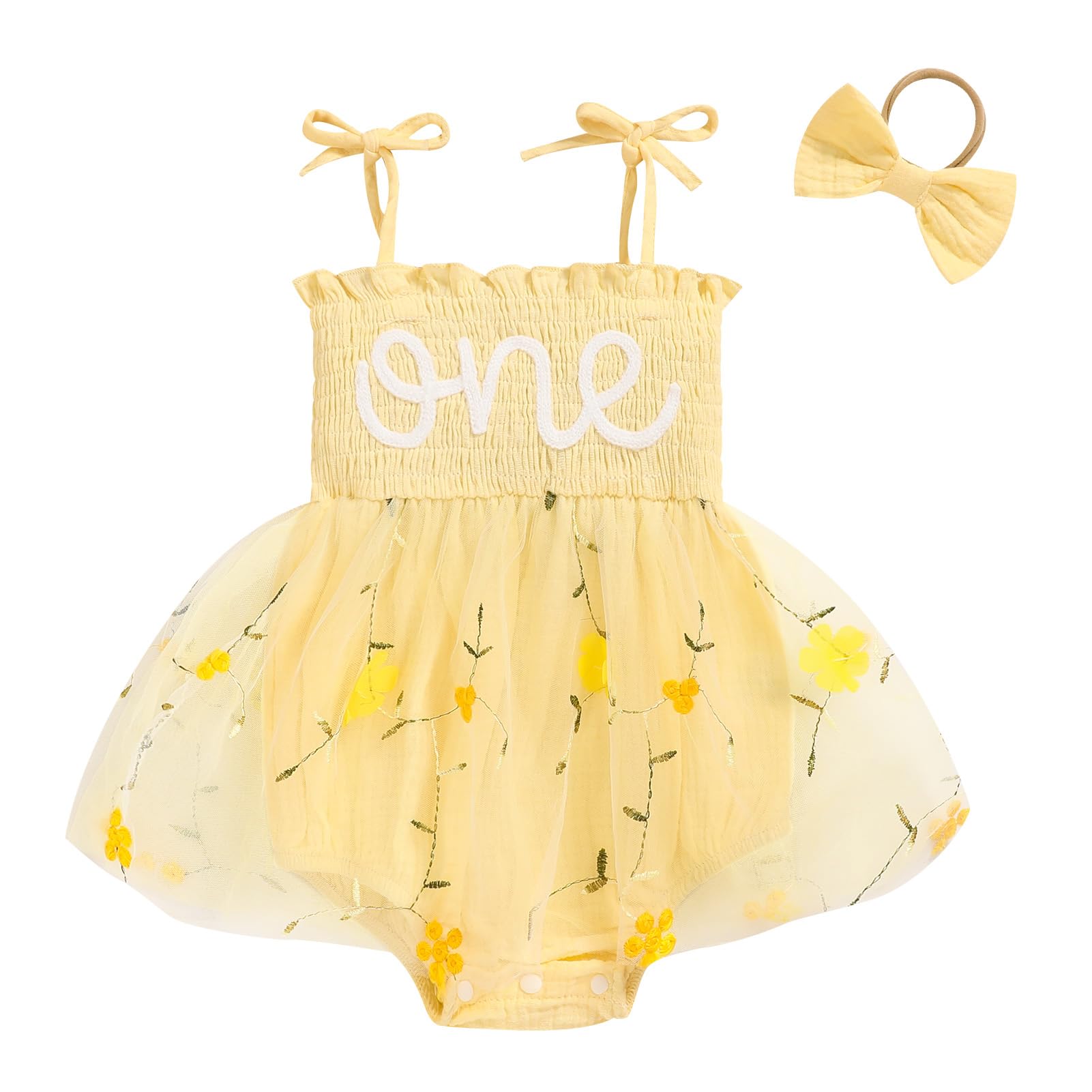 Design: Newborn baby girl playwear romper dress with sleeveless, solid color, multi-layered tulle, Snap leg openings for easy diaper changes, easier morning for novice mother.Cute princess 1st birthday outfit, fashionable and adorable embroidery ONE printed themed birthday clothes perfect for creating beautiful memory of her first birthday.