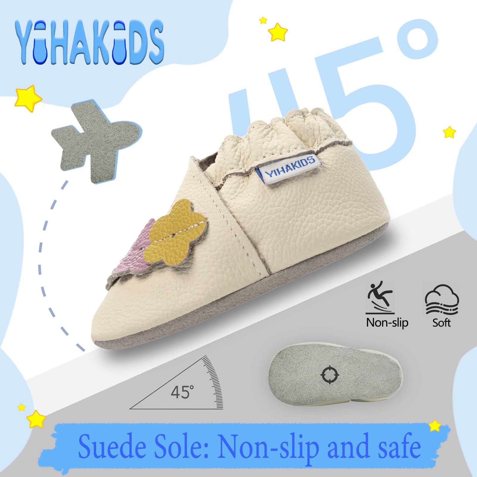 YIHAKIDS baby leather shoes are made of soft genuine cowhide leather with a non slip suede sole, providing a great grip on the floor.