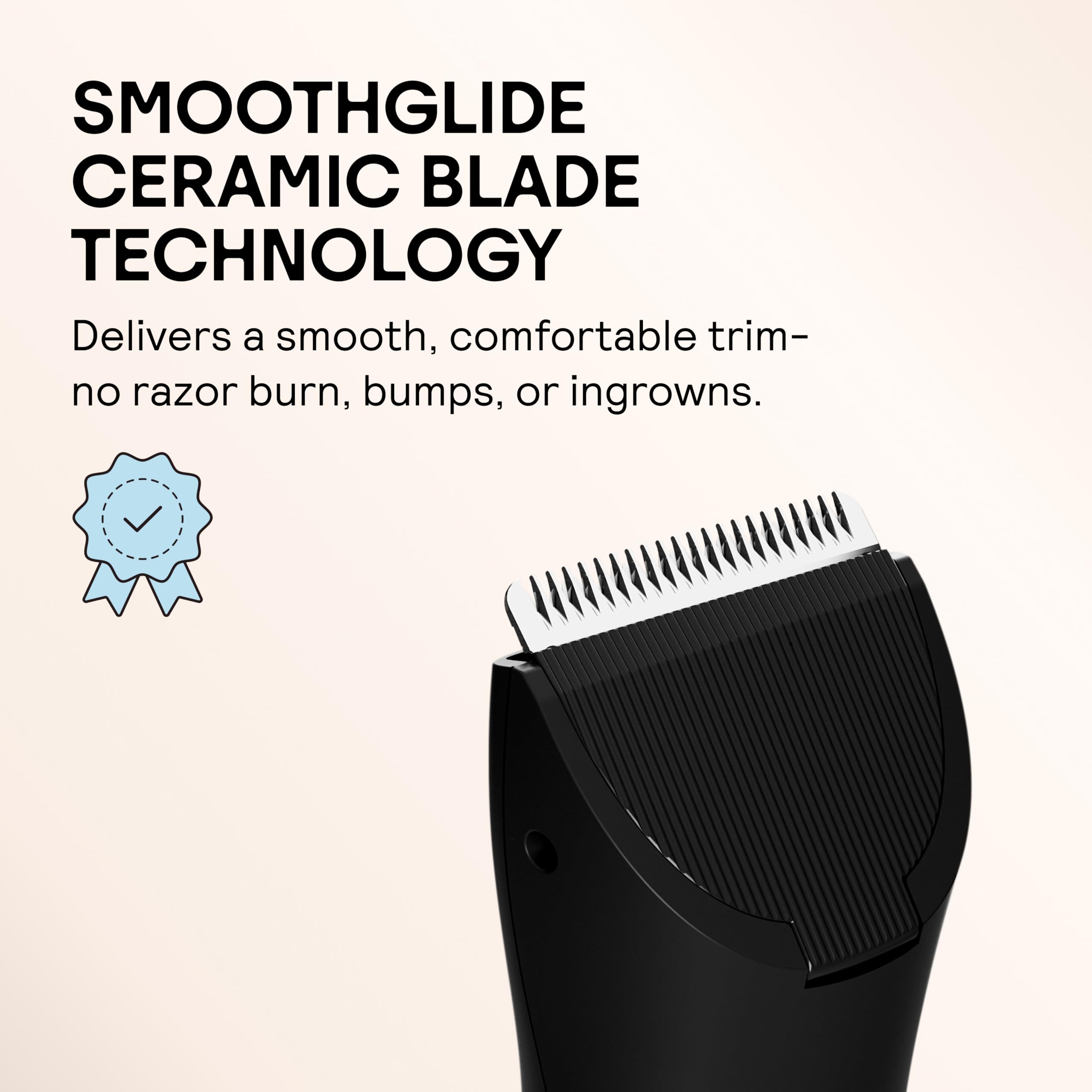 NO BURNS. NO BUMPS. NO BS: Forget the fear of nicks. Our ceramic blade trims just above the skin—no irritation, no redness, no razor burn, and no ingrown hair. It’s smooth sailing from top to below the belt.