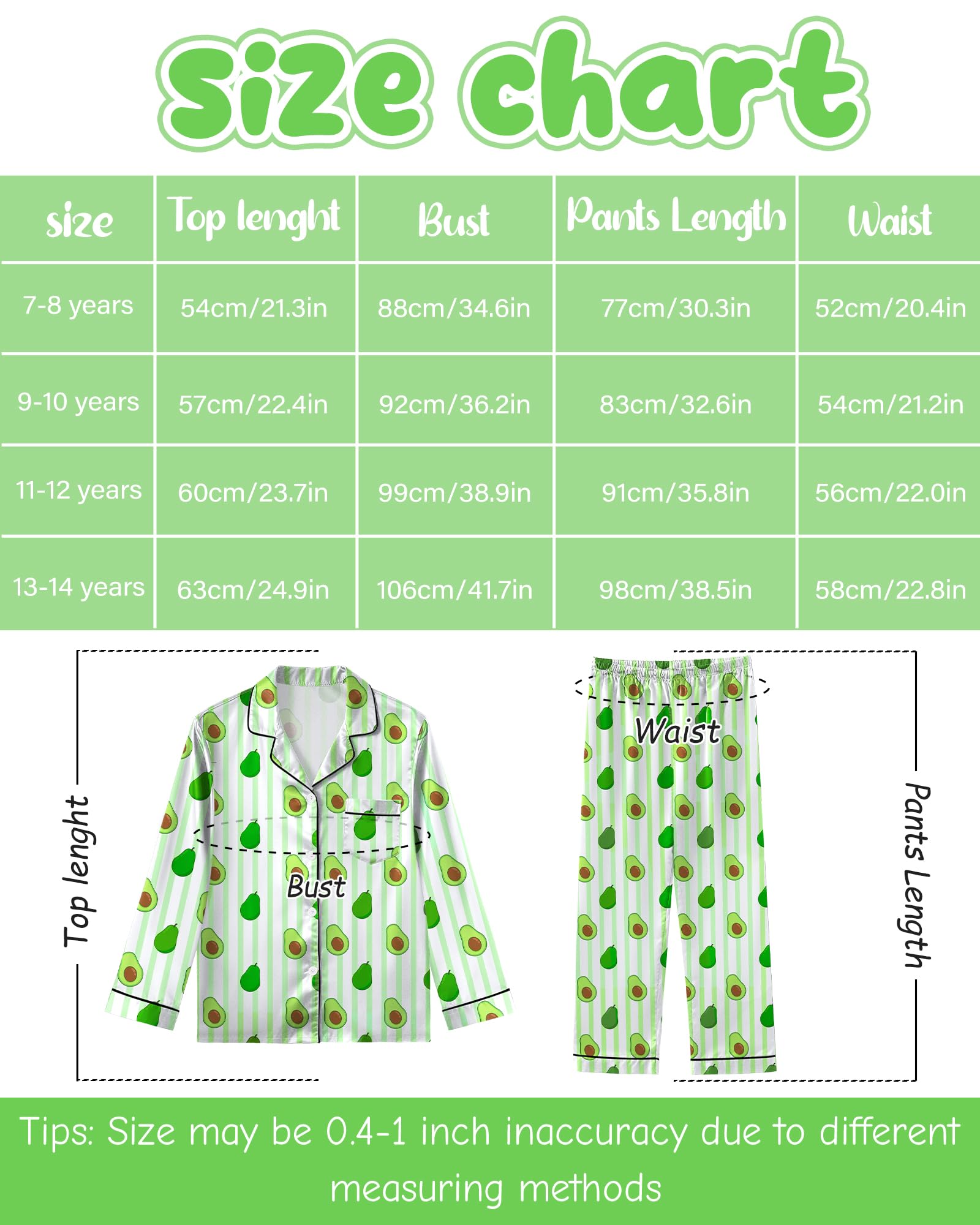 3.Age for Kids Pajamas set: Girls pajamas set is fit for your girls from 7 to 14 years old, please refer the size information as below description.