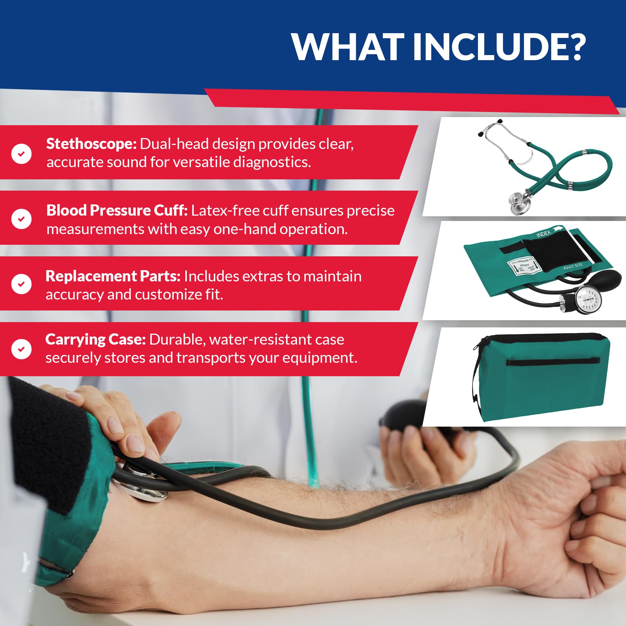 A DELUXE KIT PERFECT FOR DOCTORS & NURSES - Two pieces of high quality medical equipment come bundled together in one convenient package. Dixie EMS offers their high quality aneroid sphygmomanometer adult blood pressure cuff along with a sprague rappaport stethoscope. In addition, your order comes with a complete accessory kit and a deluxe carrying case.