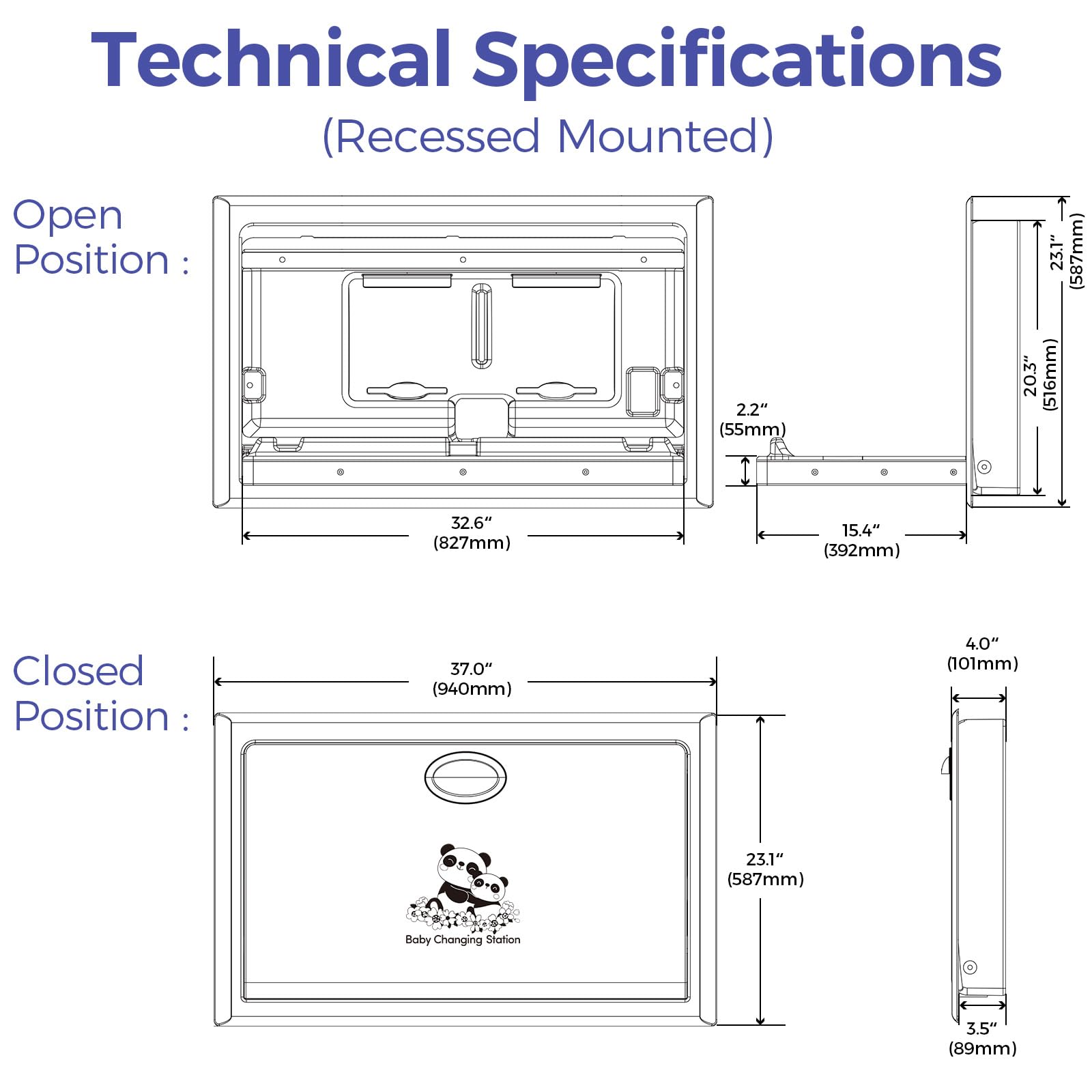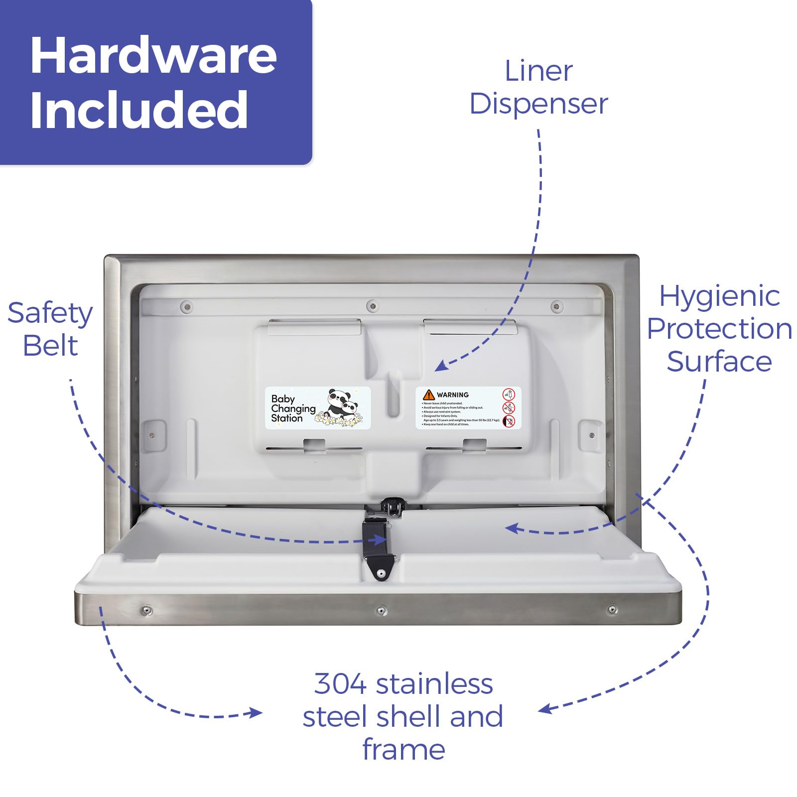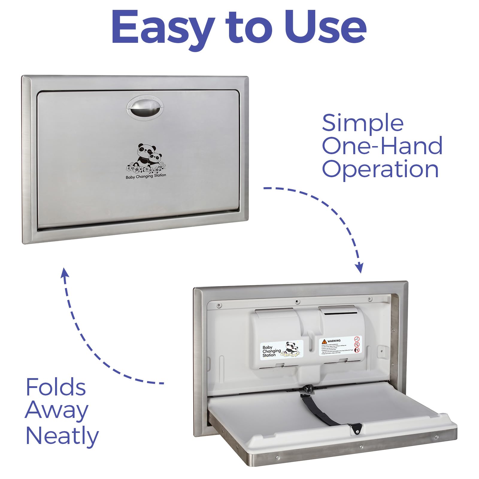 Stainless Steel Construction - Constructed with a heavy-duty stainless steel frame and door, this recessed changing station delivers commercial-grade durability with a clean, modern look that upgrades any washroom.