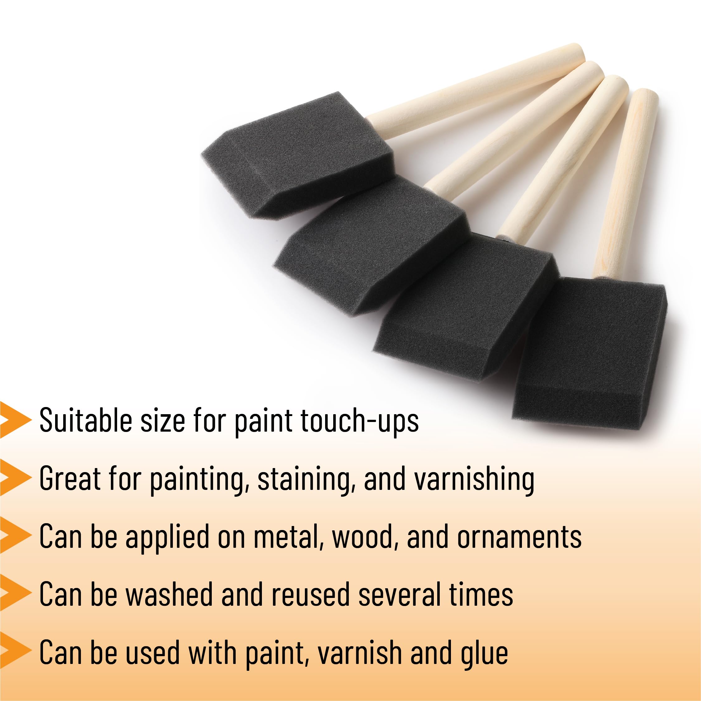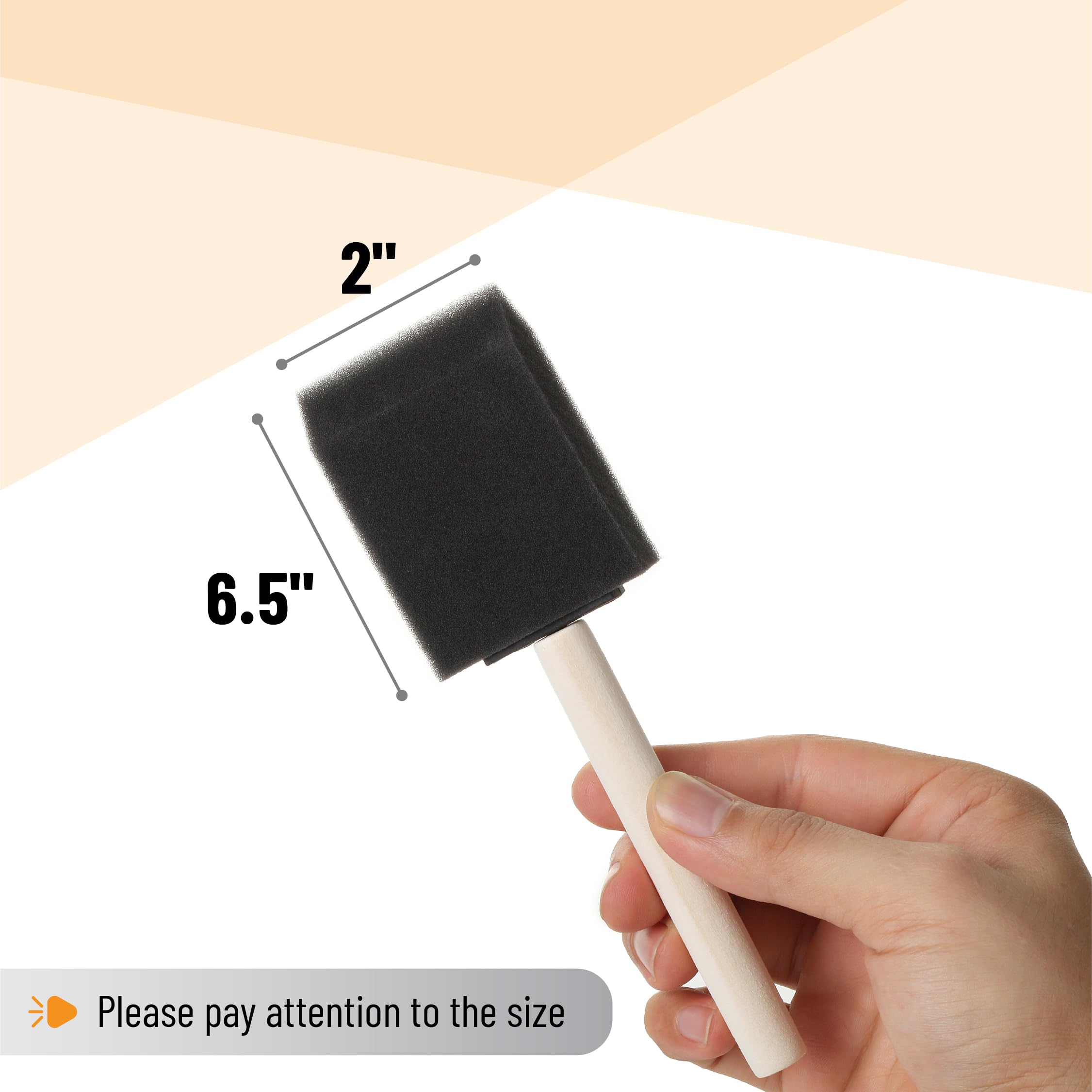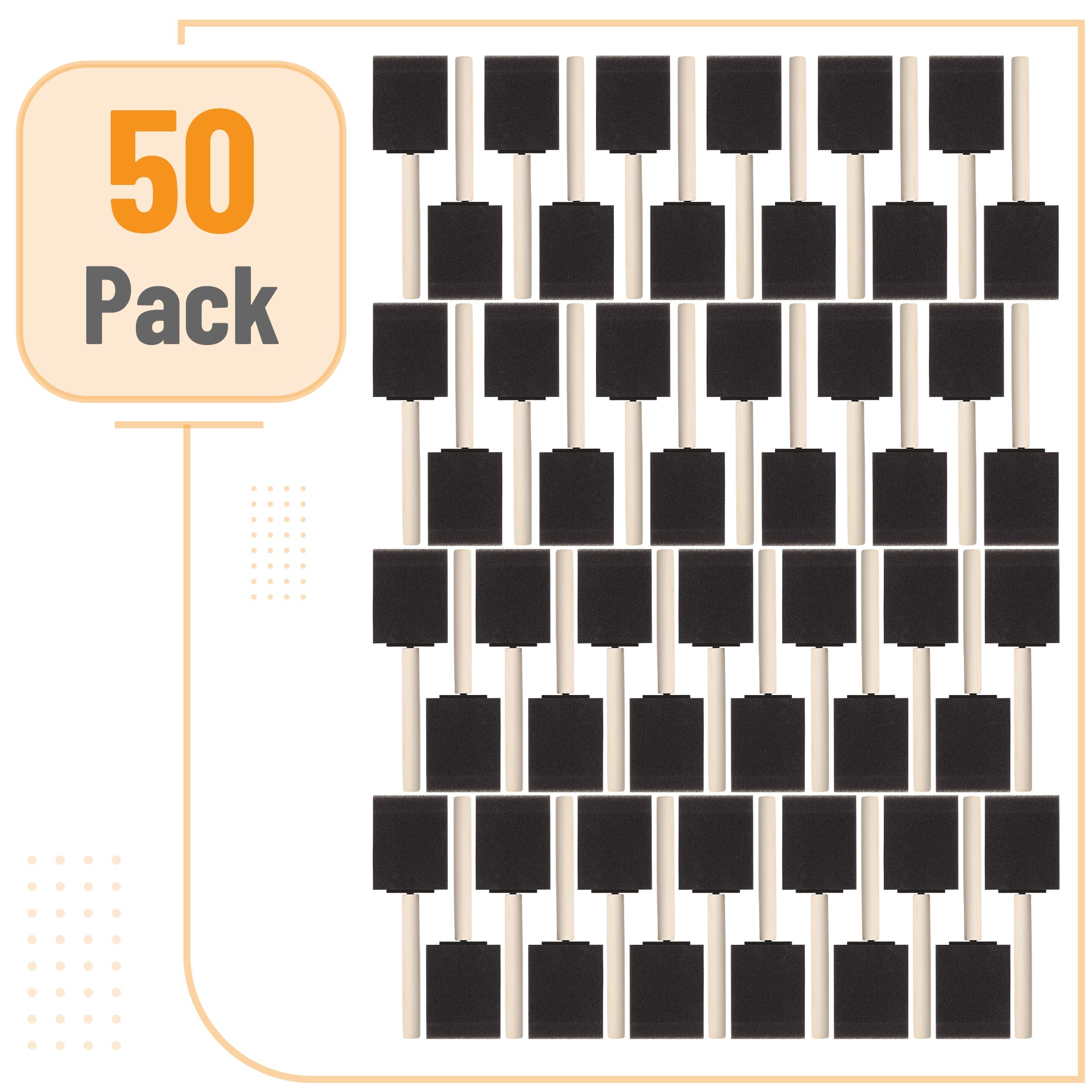 Bates foam paint brush set includes 50 foam brushes, ideal for painting, staining, and crafting projects. Constructed with dense black foam and lightweight wooden handles, these brushes provide smooth, even coverage without streaks. Designed with a 2-inch brush width, making them suitable for both detailed work and broader applications. The highly absorbent foam head holds paint efficiently, ensuring controlled application and minimizing drips. Suitable for home improvement, furniture refinishing, and art projects, these versatile brushes work well with various paints, stains, and finishes.