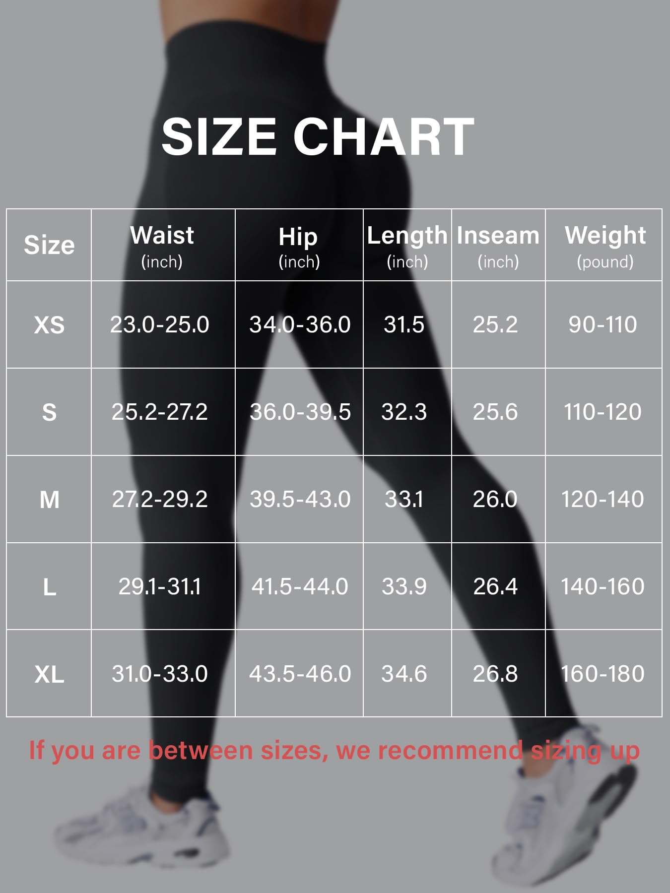 Size: The leggings are slim fit, if you are between two sizes, please choose the larger size, when you choose a size that is too small, the fabric of the product maybe stretched too much and become transparent