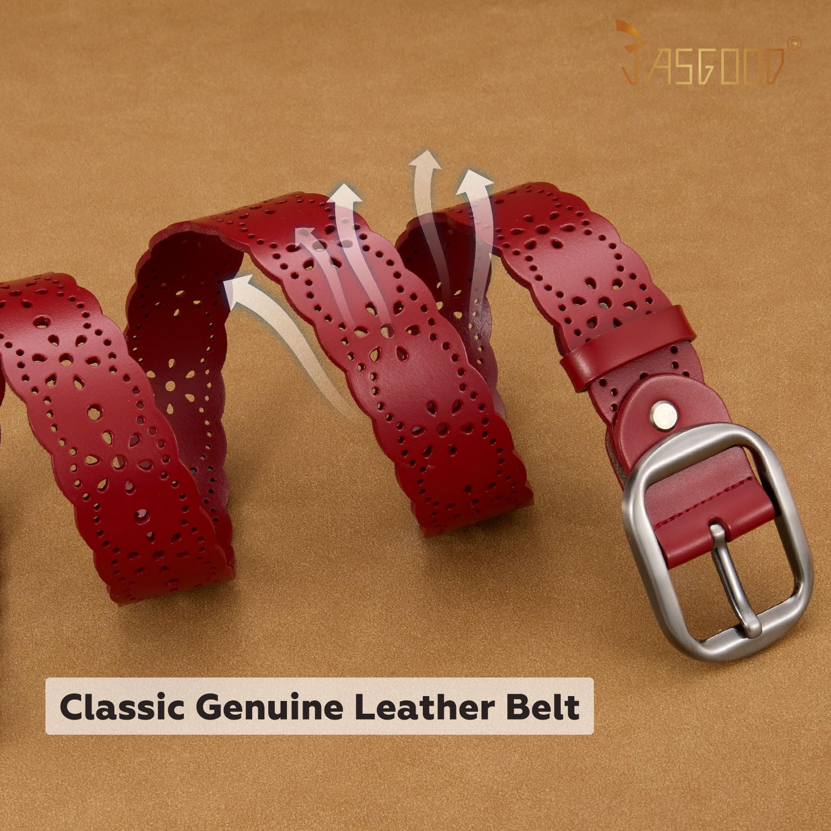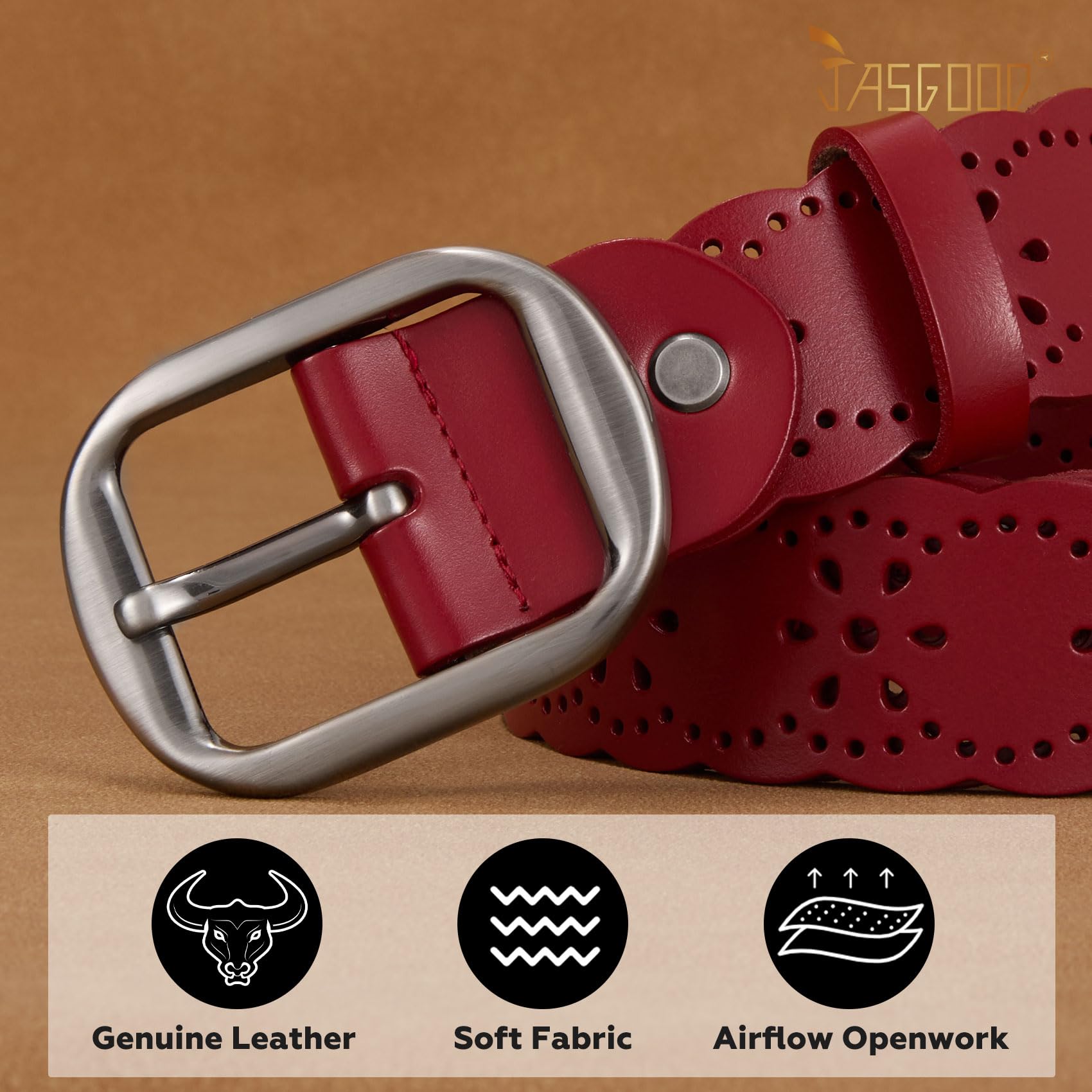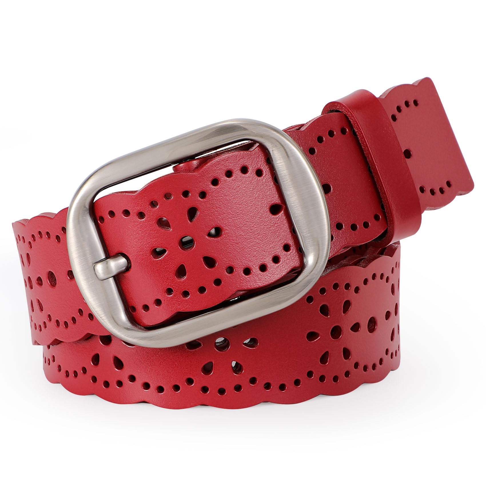 Women Wide Belt made of high quality leather that touch so soft and durable. The metal buckle is polish surface without blemishes that always keep shiny. The flower cuts are very precise and have no residual flakes of leather.
