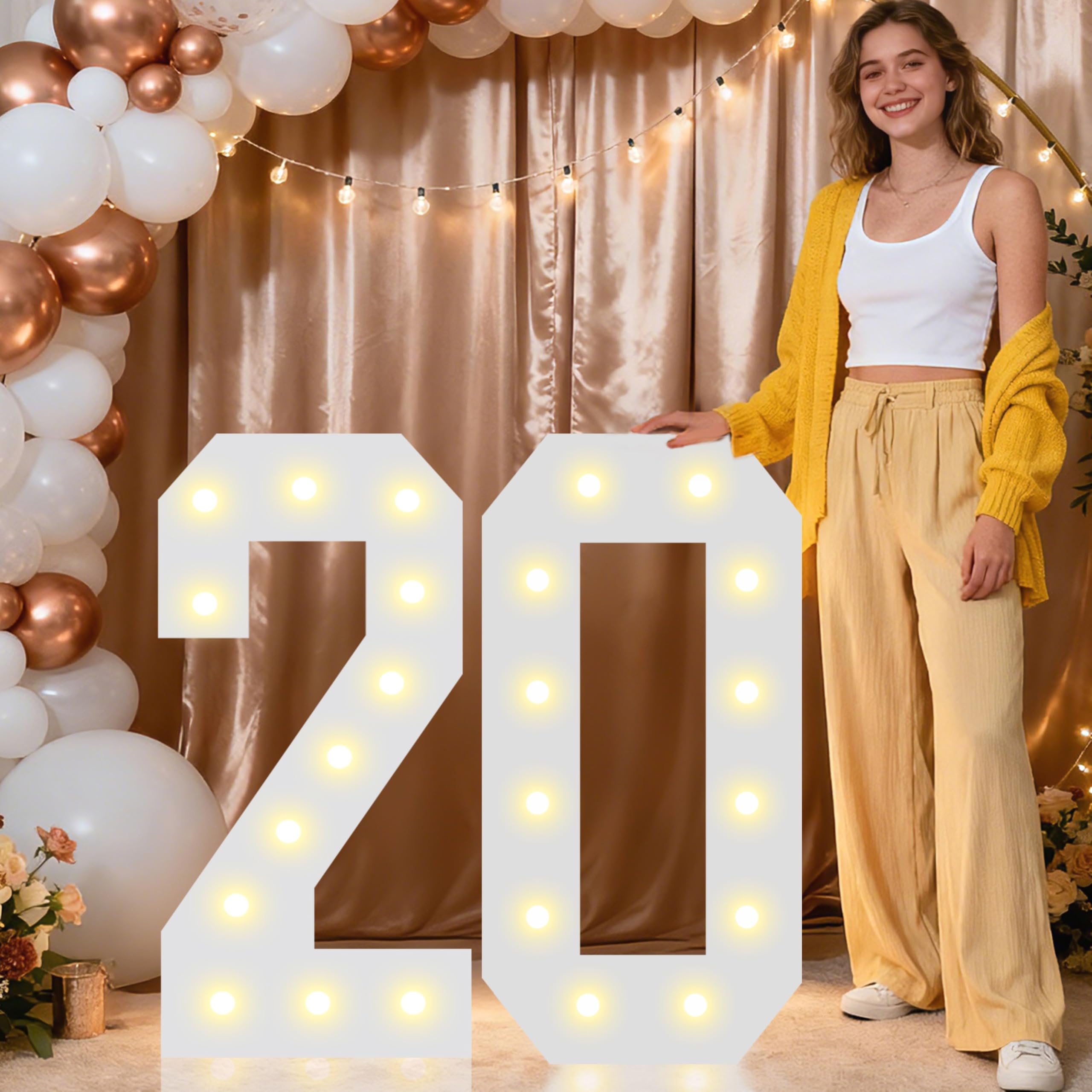 Giant 2.4 Feet Marquee Numbers with LED Lights: Mosaic numbers designed with warm white LED string lights. Giant LED numbers can be powered by 3 AA batteries (Not Included), convenient for all kinds of party decoration