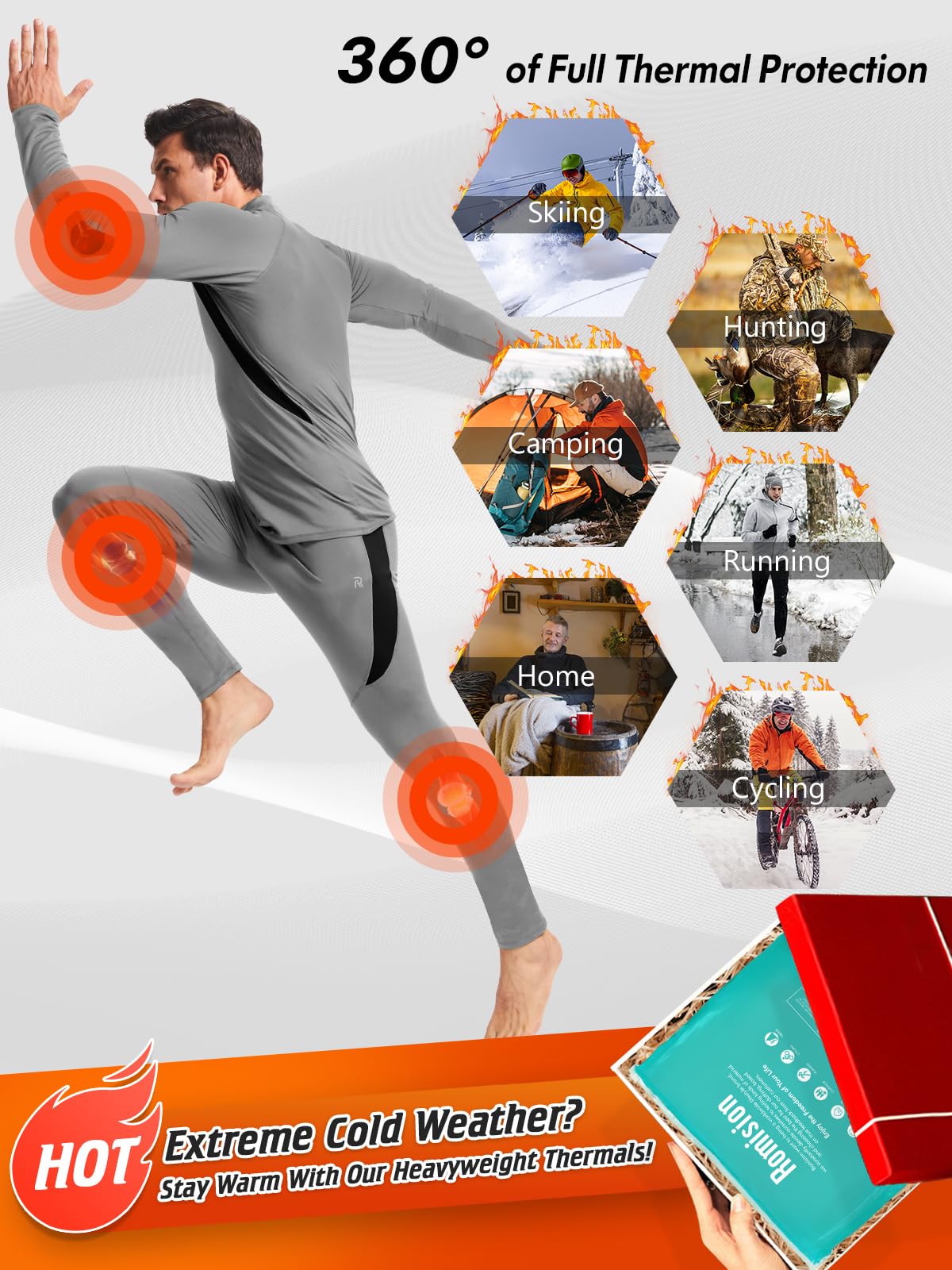 π¨Maximum Heat Retention β Featuring an ultra-warm fleece interior, these thermals trap heat, keeping you warm even in sub-zero temperatures. The breathable outer layer allows moisture to escape while maintaining a consistent, warm microclimate next to your skin. Perfect for those who need reliable thermal underwear for men during frigid outdoor activities like skiing, snowboarding, and hiking.